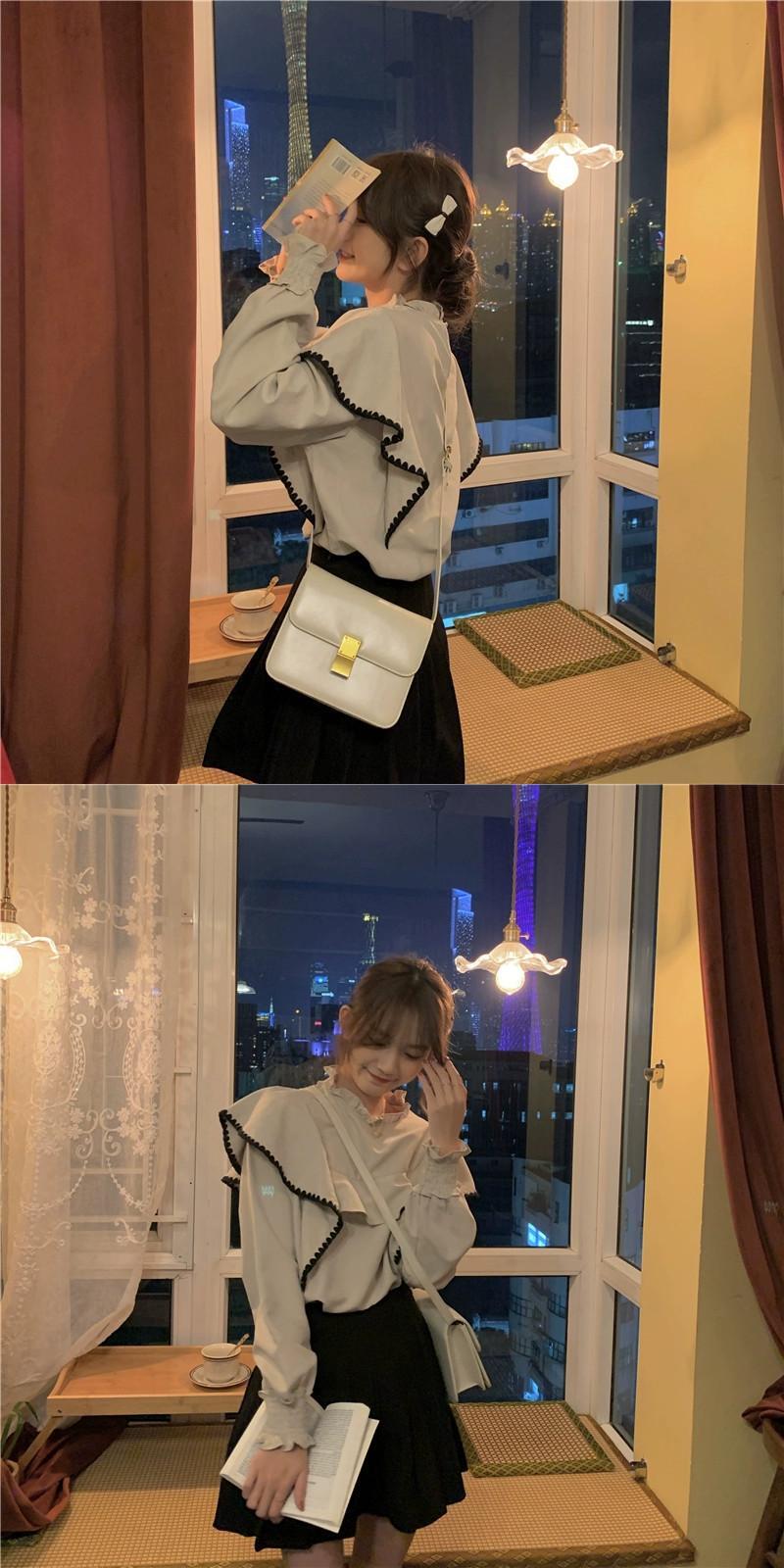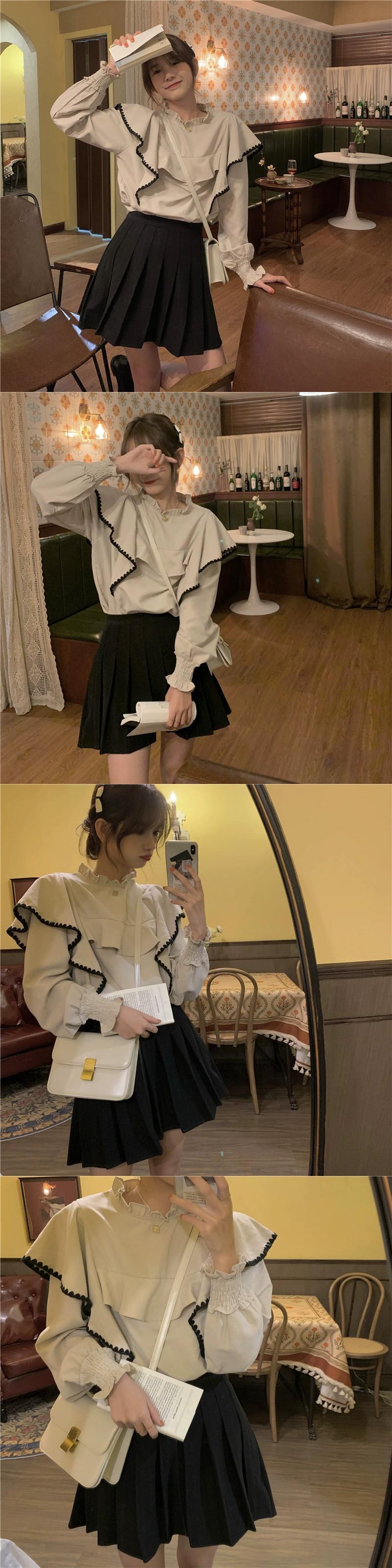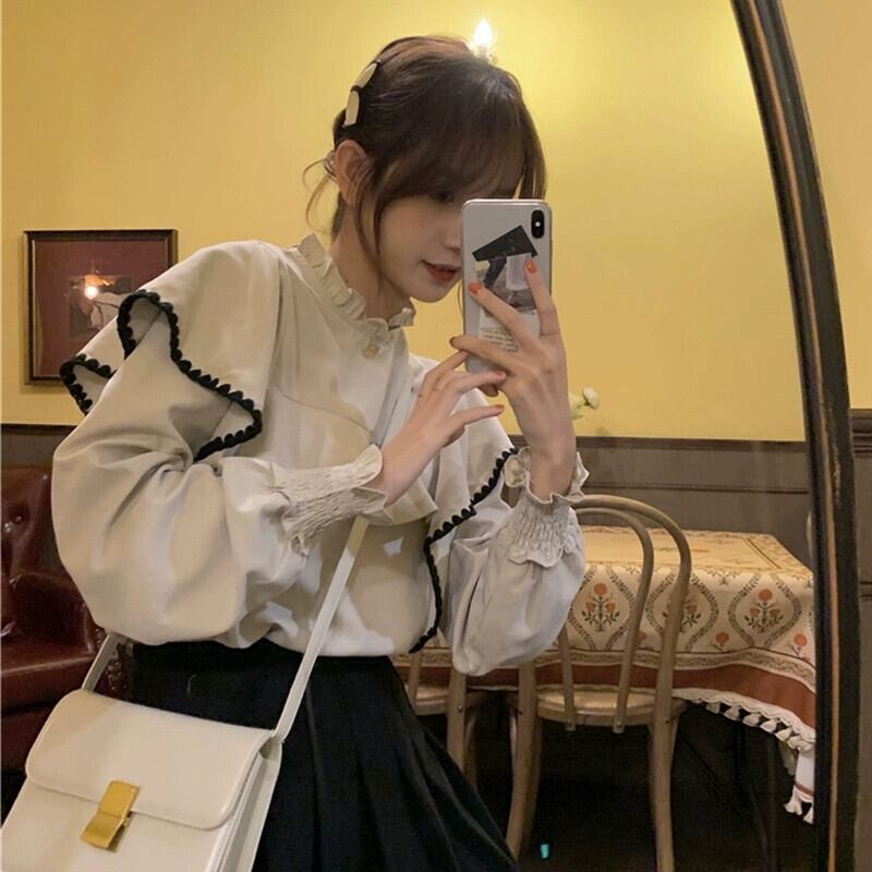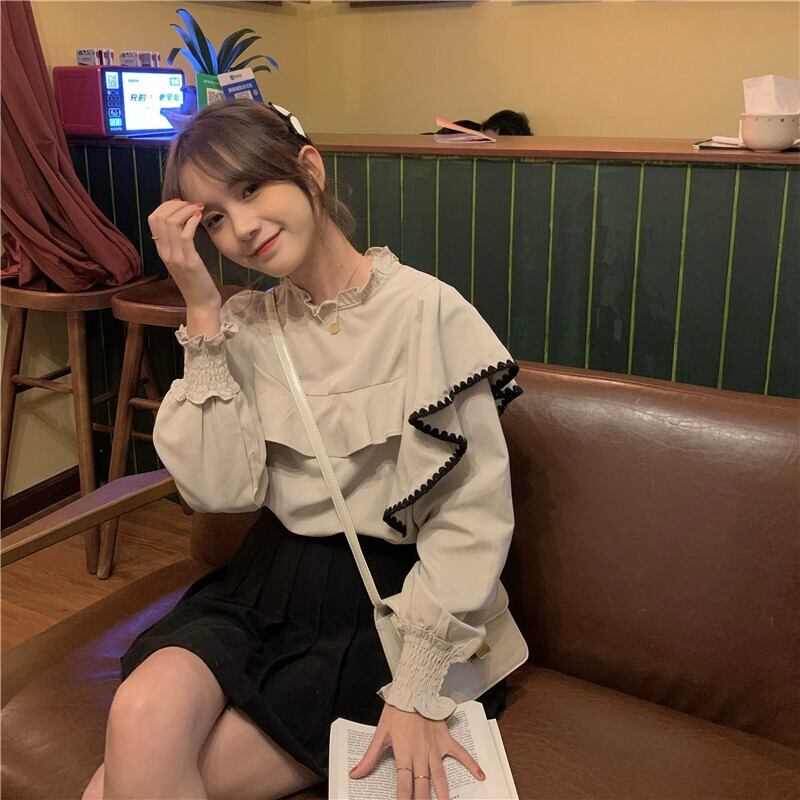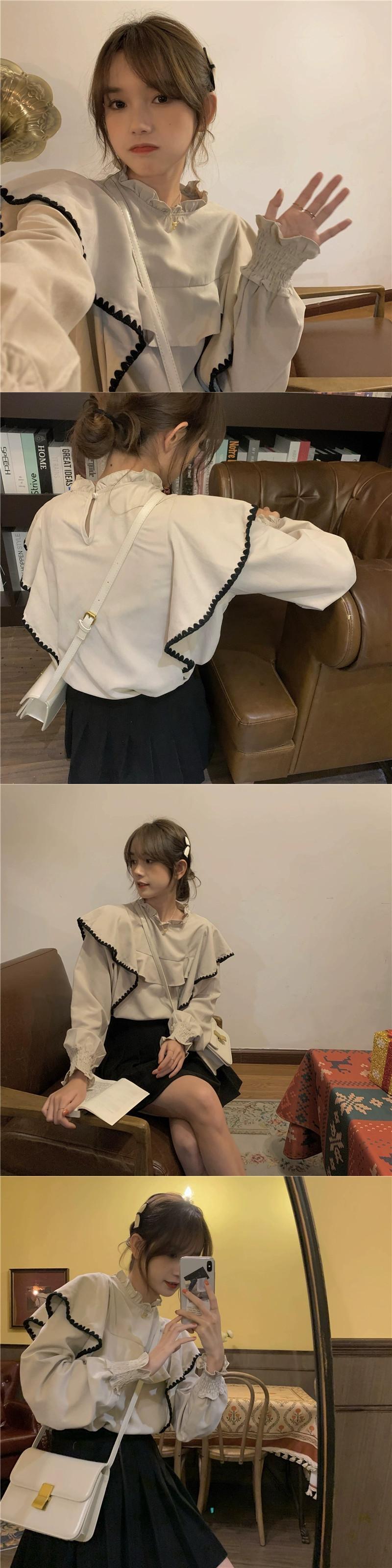 フリルシャツレディースデザイン2023秋新作レトロスタンドカラーアウターウェア優しくスタイリッシュな長袖トップス ロング オータム 秋物 missk46397088573