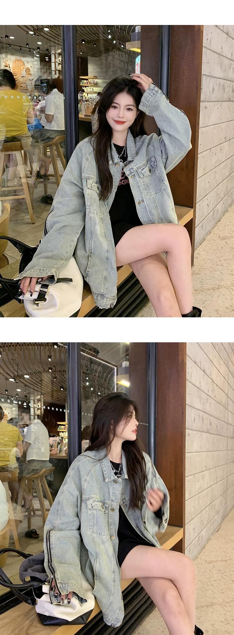 有能レトロ長袖デニムジャケット女性秋冬 2023 新デザインニッチジッパー BF スタイルルーズトップ ロング オータム 秋物 ウィンター 冬物 missk3127569861
