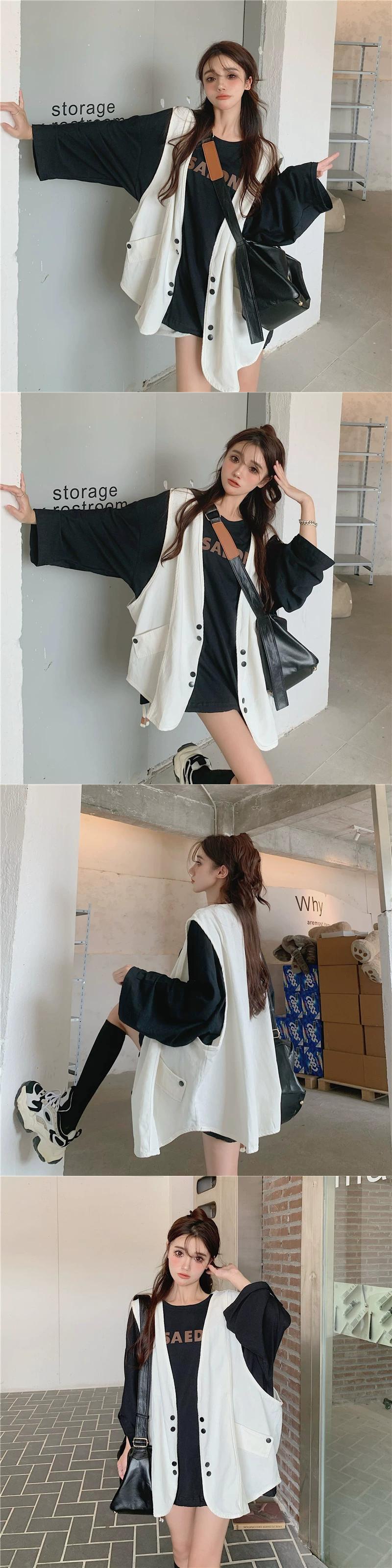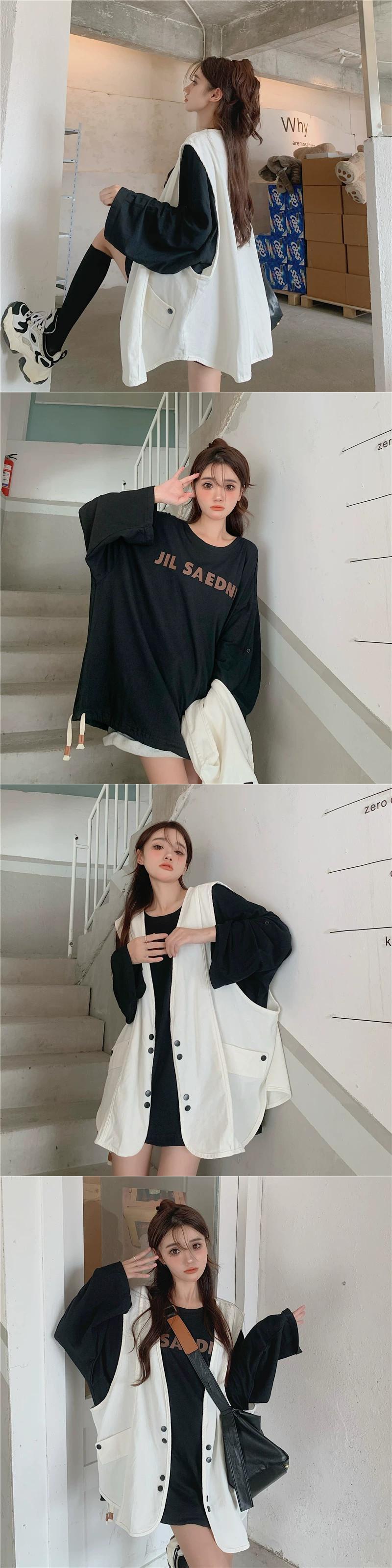 レトロファッション作業着ベストスーツバット長袖ルーズ Tシャツ女性の初秋 2023 新しいイントレンド ロング オータム 秋物 missk32700007831