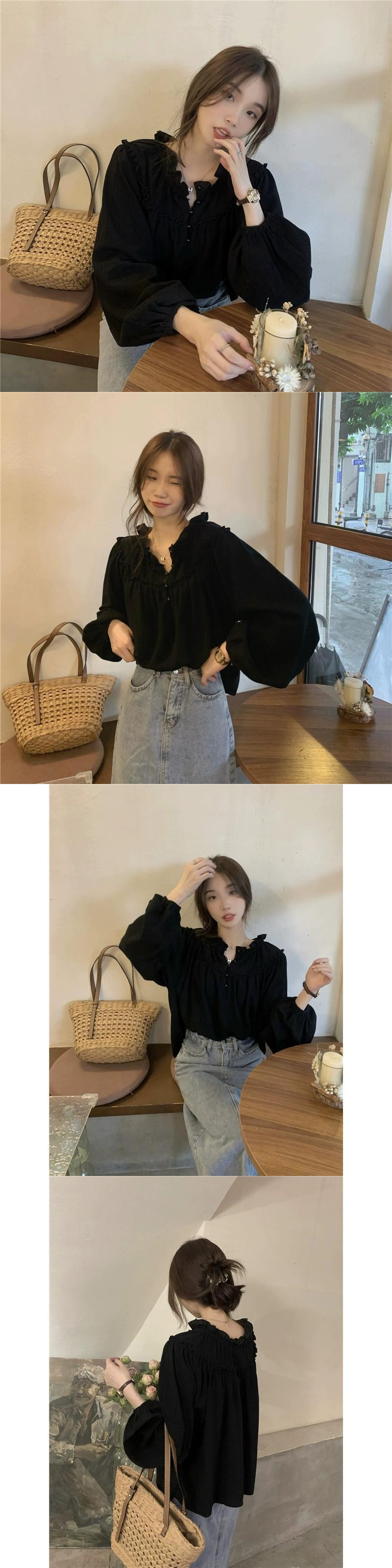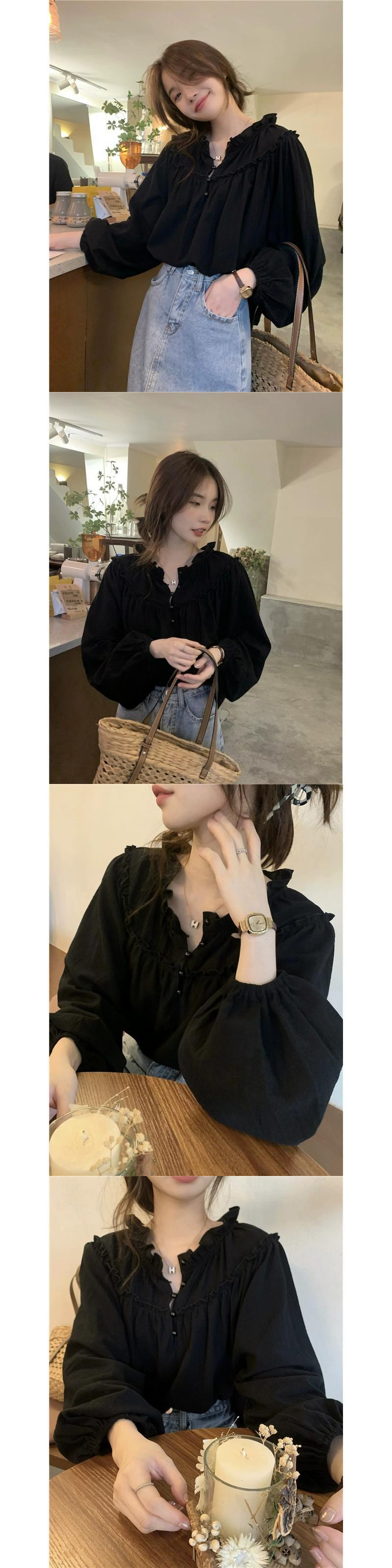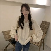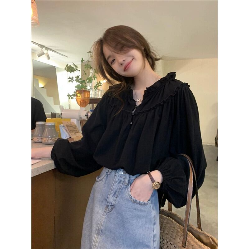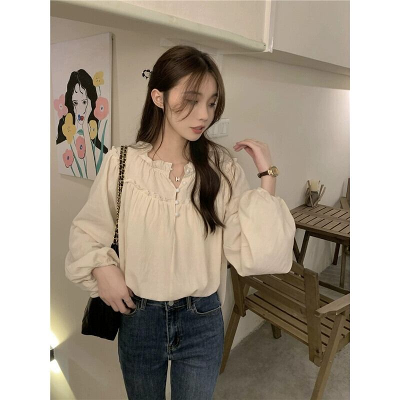 パフスリーブシャツレディース2023秋新作シックな菌デザインフレンチレトロプルオーバー長袖トップ ロング オータム 秋物 missk44073748666