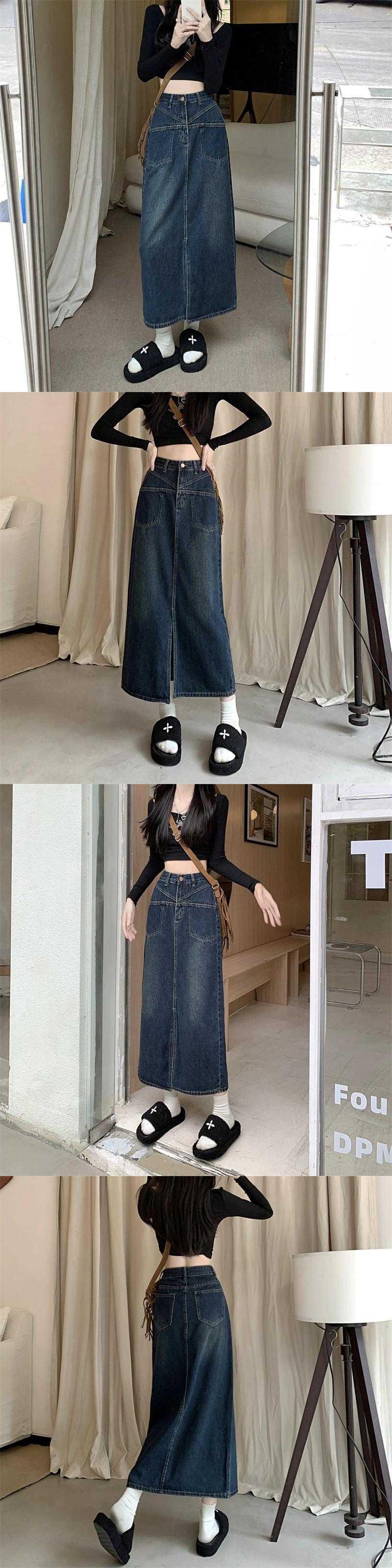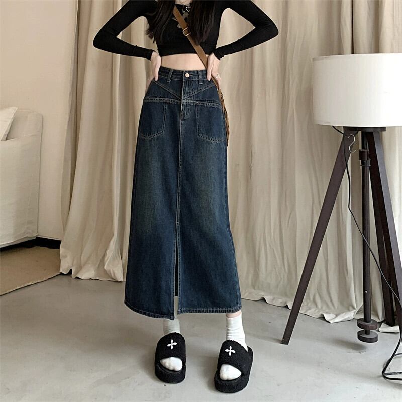 スリットデニムスカート レディース 秋冬バージョン 2023新作 ハイウエスト スリムデザイン 膝上ロングスカート Aラインスカート オータム 秋物 ウィンター 冬物 missk57199398577
