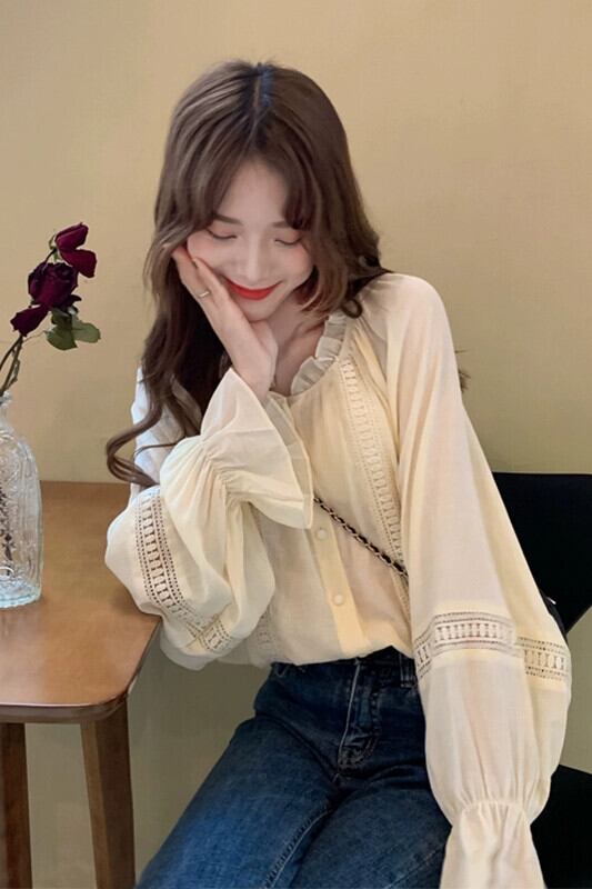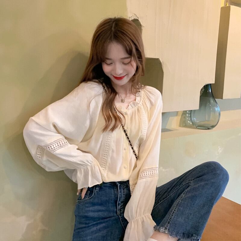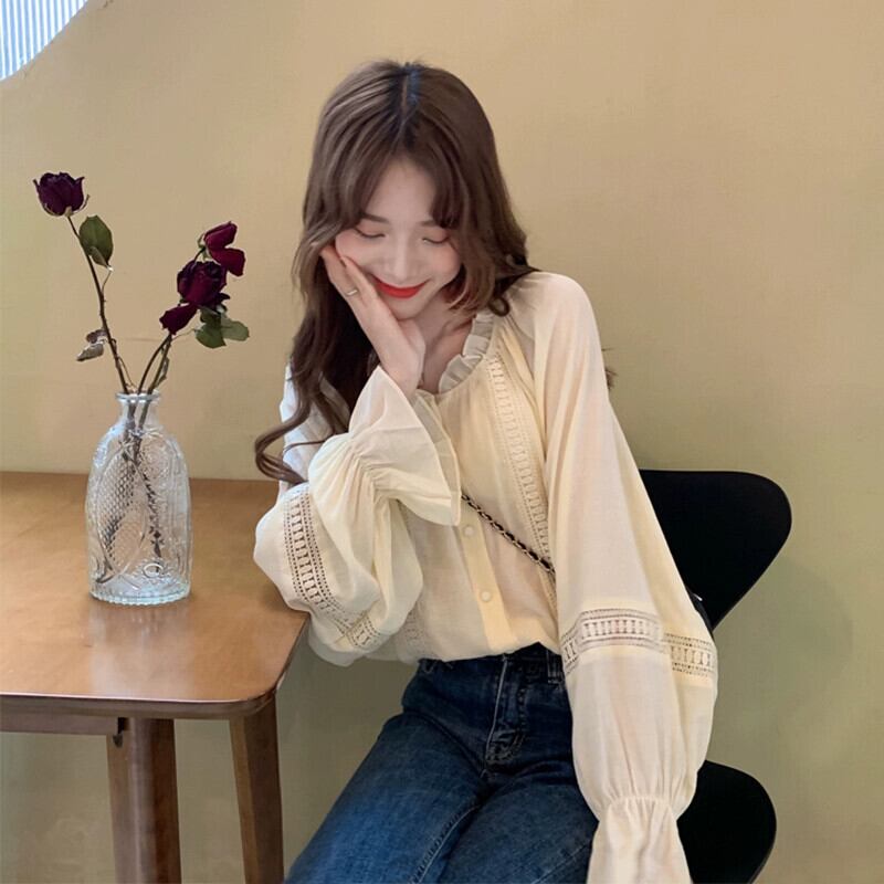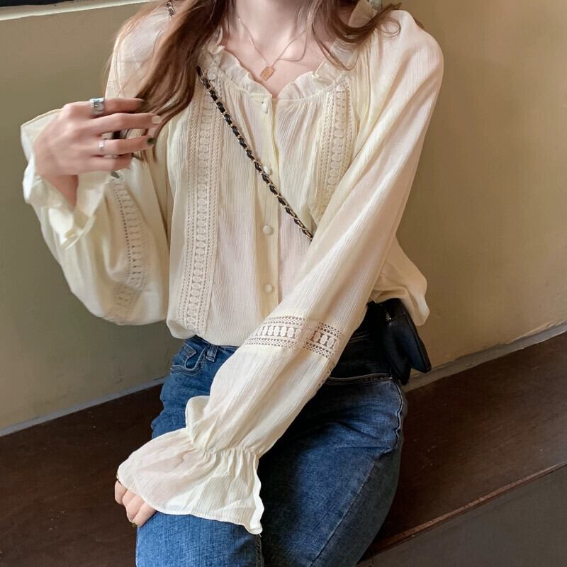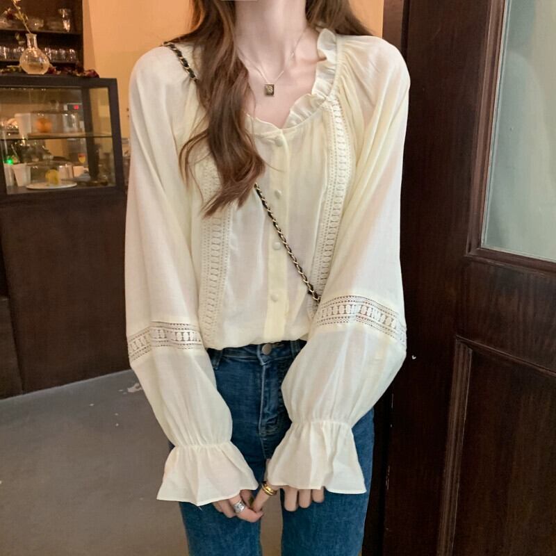 穏やかで優しいスタイルの中空菌シフォンシャツ秋 2023 新しいファッションデザインルーズトップ女性 オータム 秋物 missk20533194955