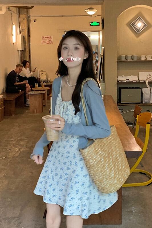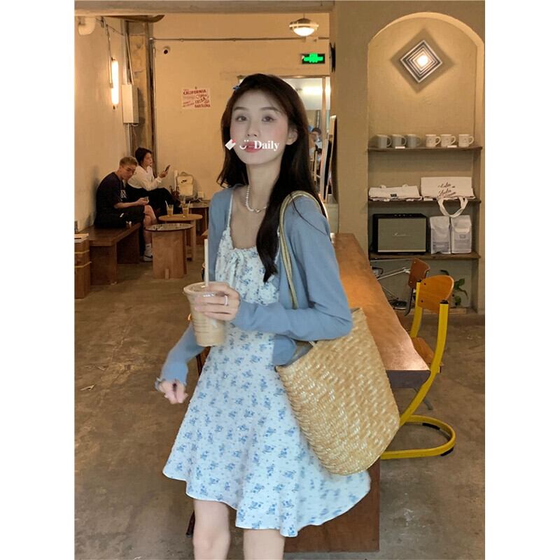 甘い花柄レース痩身サスペンダードレス + 長袖カーディガン女性秋 2023 新しいファッションスーツ ロング 大人ガーリー スウィート キュート カジュアル オータム 秋物 missk55731983228