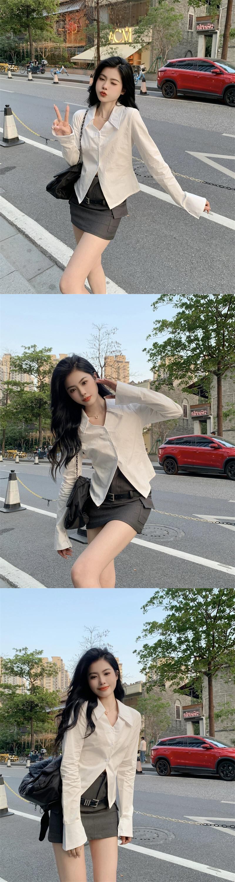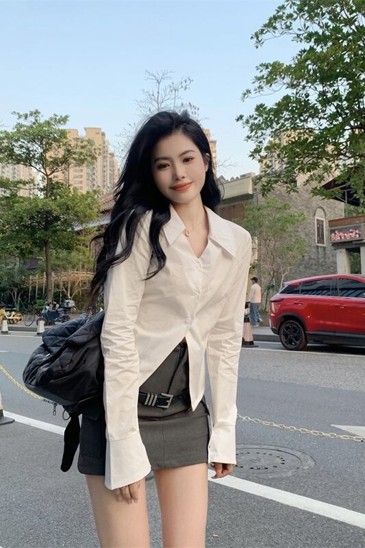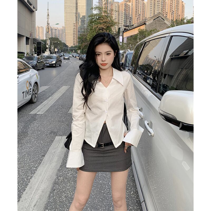色:白のシャツ,ベルト付きスカート