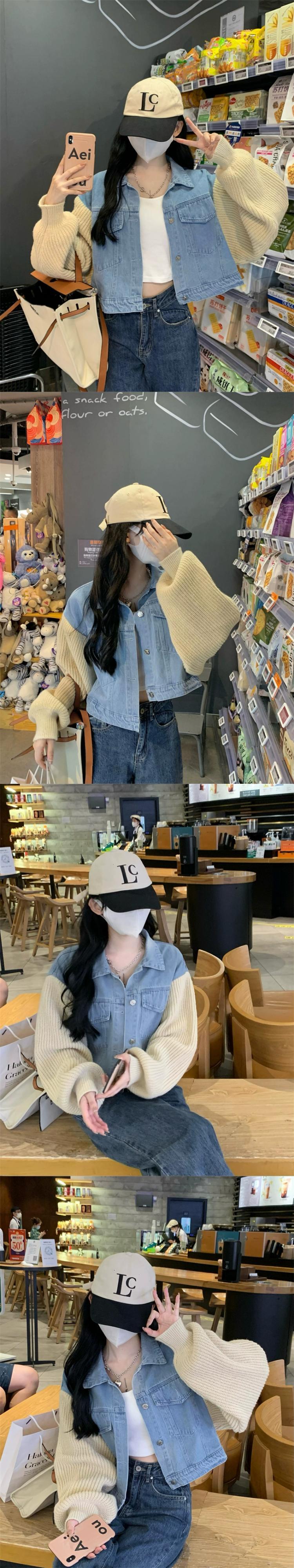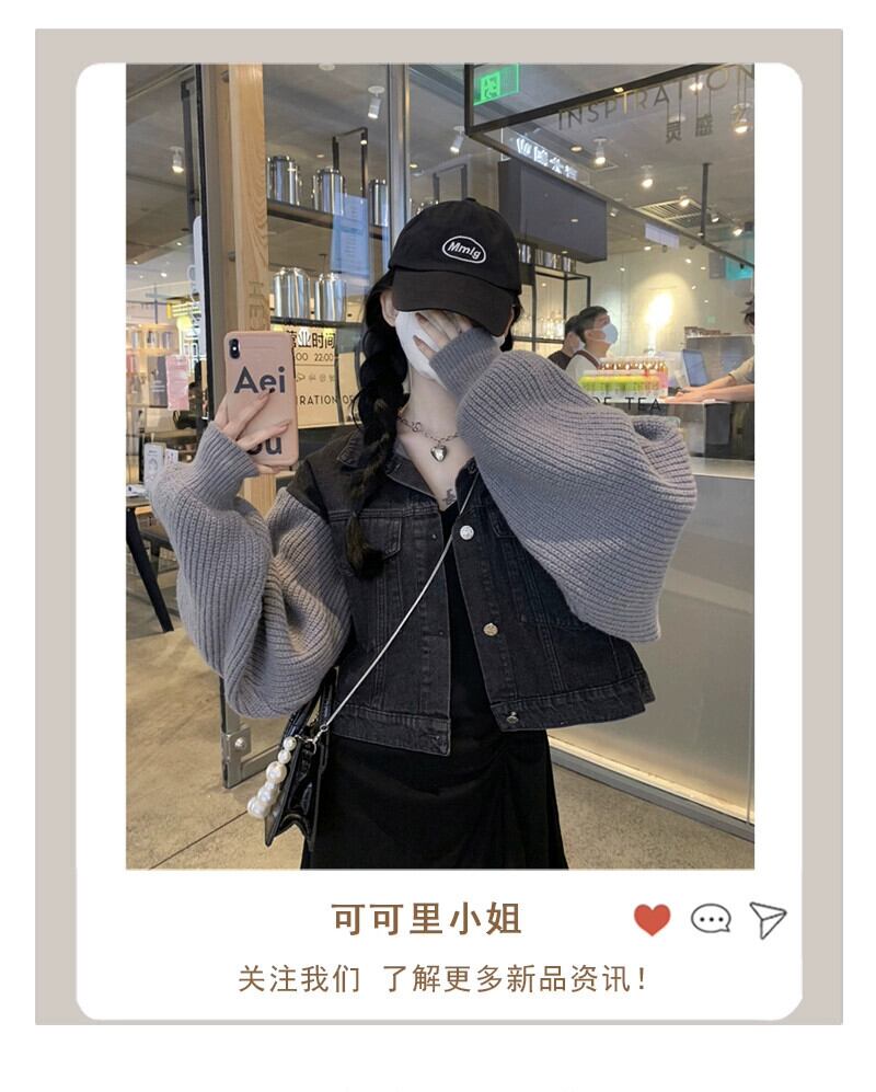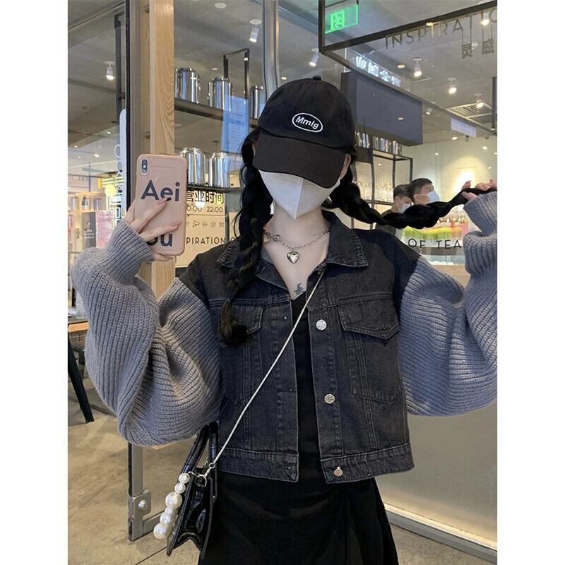 エドニットスプライシング長袖デニムジャケット女性秋冬2023新しいポロカラー甘くてクールなショートトップトレンディ ロング 大人ガーリー スウィート キュート カジュアル オータム 秋物 ウィンター 冬物 missk90144349592