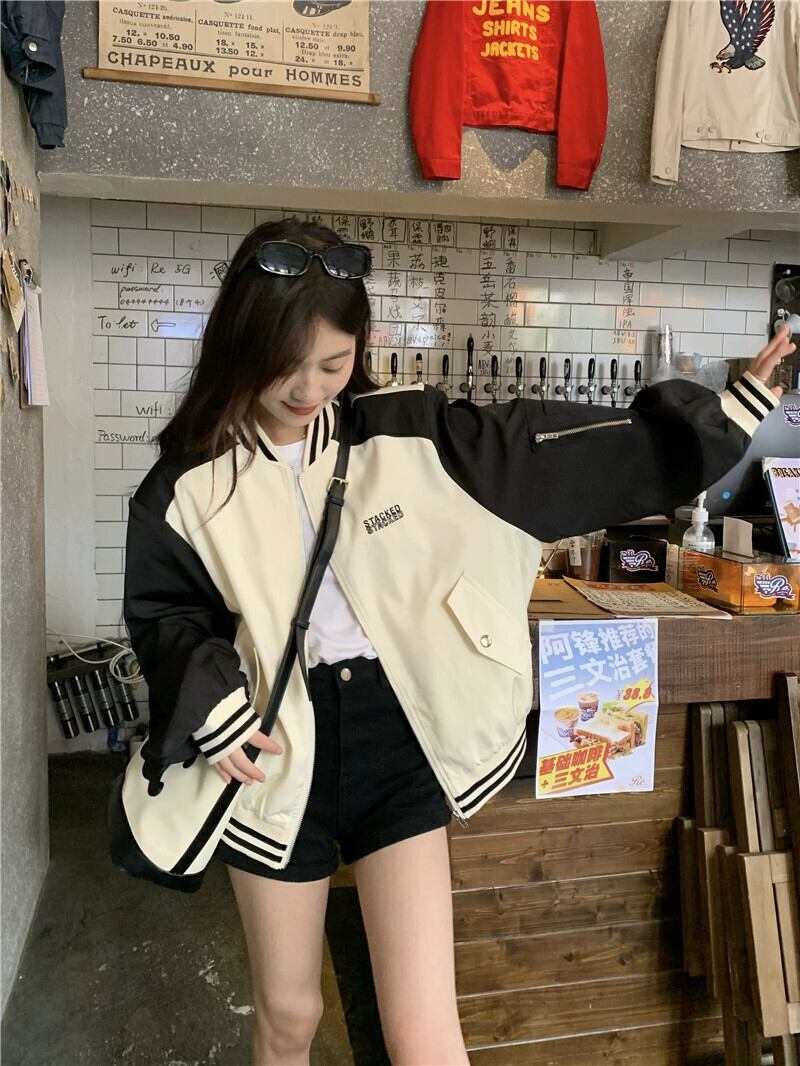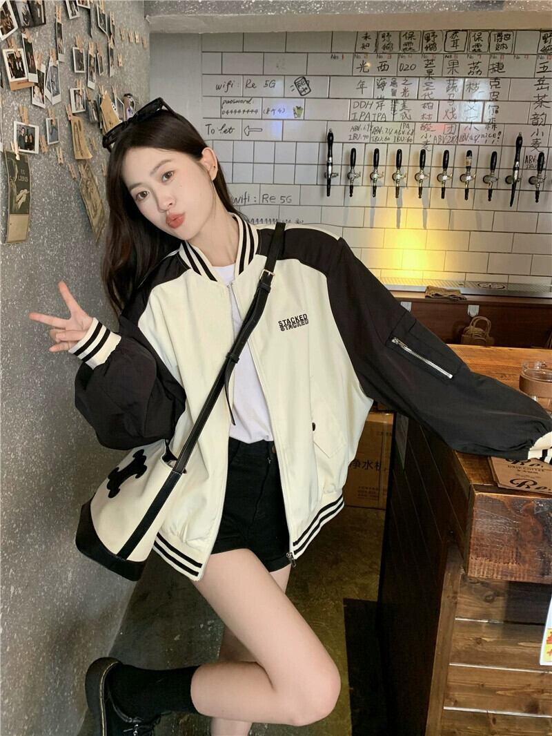 ネットセレブ ジャケット レディース 2023 秋冬新コントラストカラーステッチ文字刺繍アメリカンルーズ長袖野球ユニム ロング オータム 秋物 ウィンター 冬物 missk88303870335