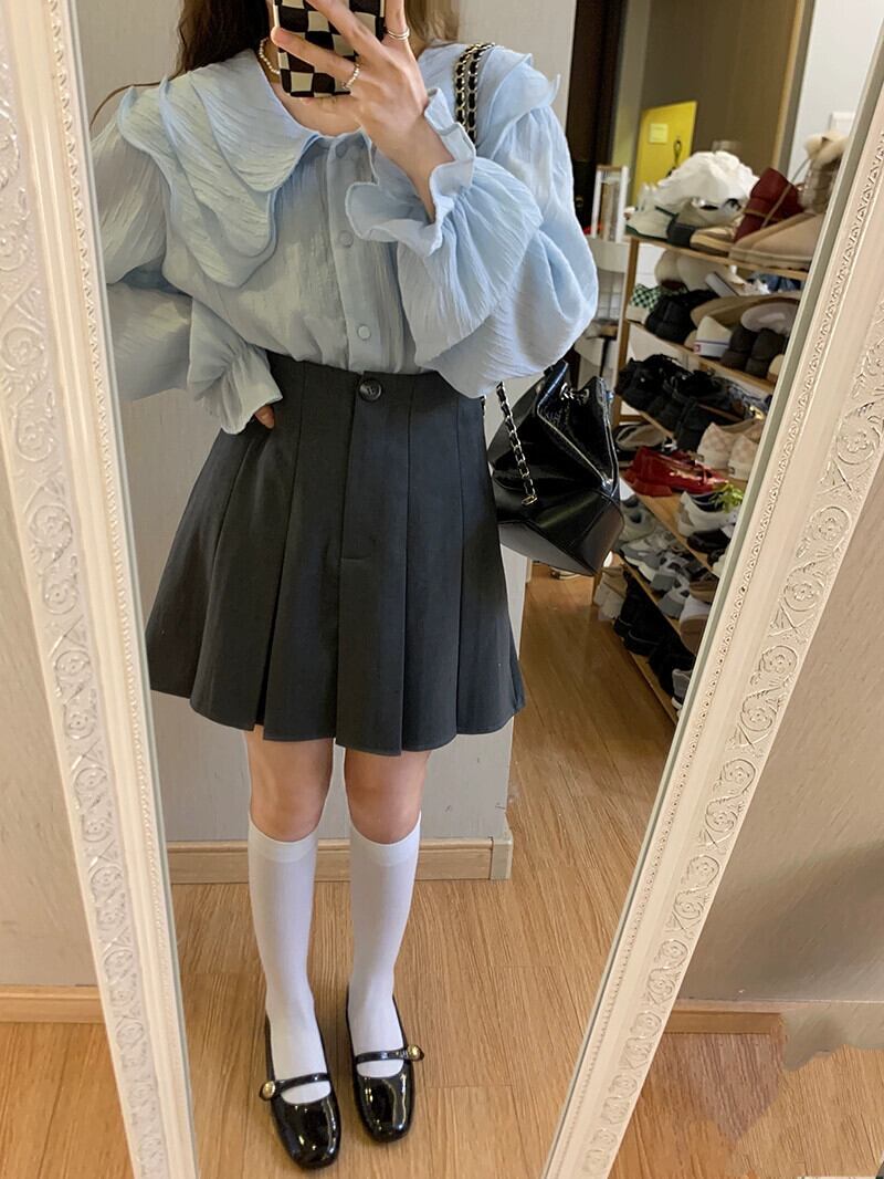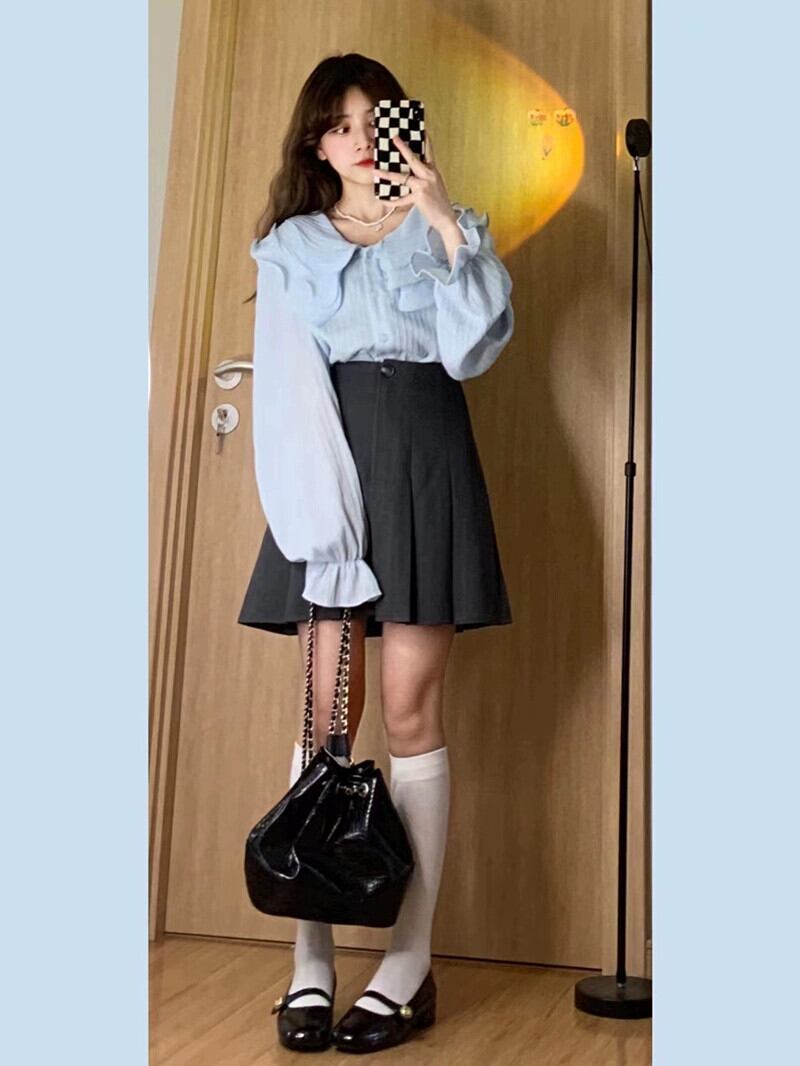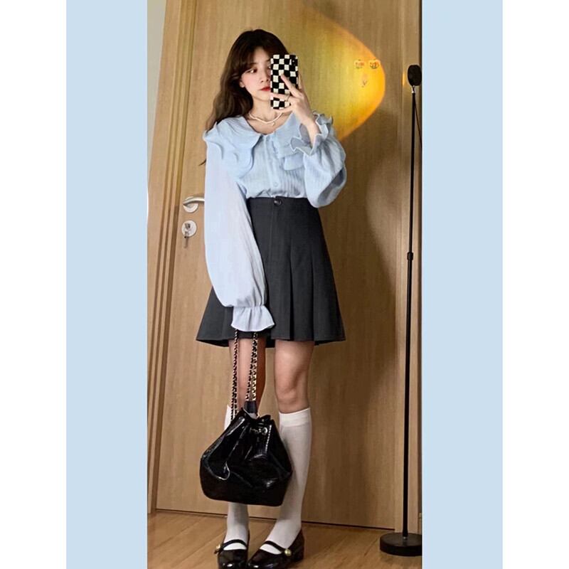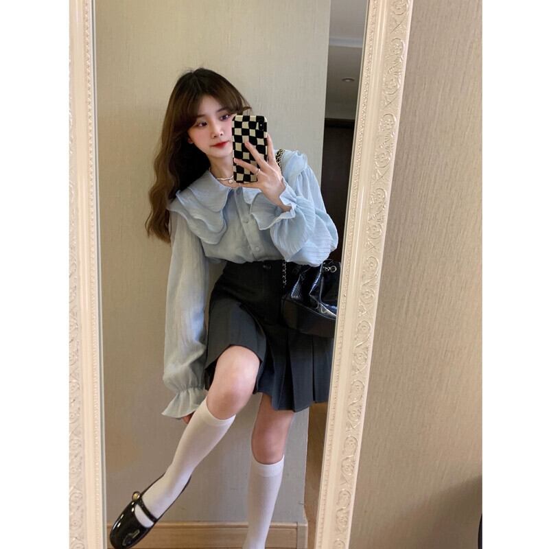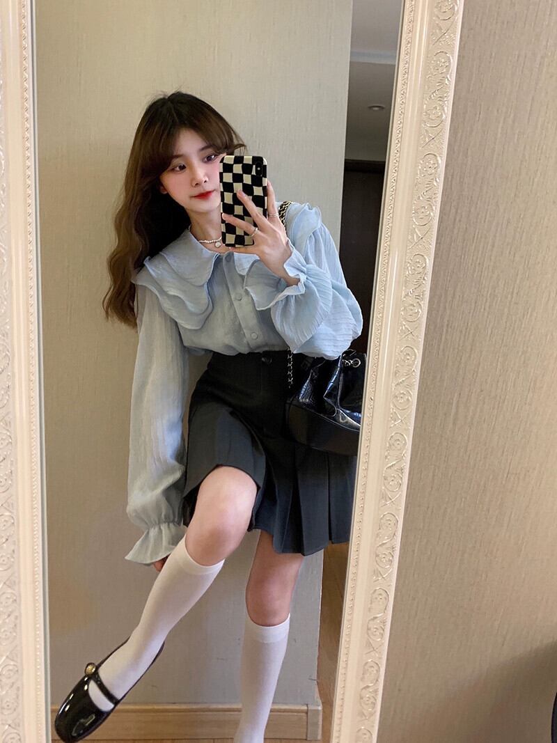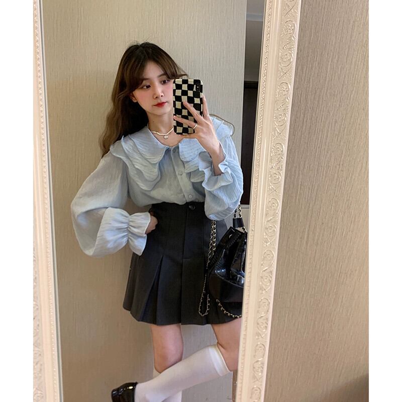 甘いフリルラペル長袖シフォンシャツ女性秋 2023 新デザイン初恋アウターシックなトップ ロング 大人ガーリー スウィート キュート カジュアル オータム 秋物 missk57352563405