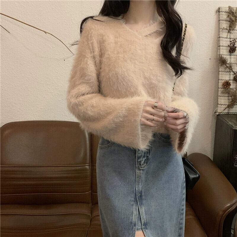 イミテーションミンクセーターレディース秋冬 2023 新しいハイエンドデザインショートシック長袖ニットトップ ロング オータム 秋物 ウィンター 冬物 missk40515456394