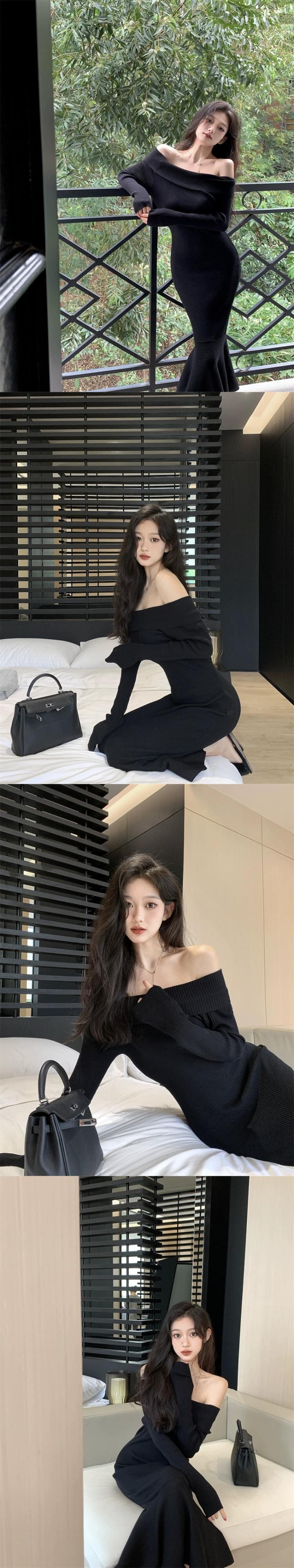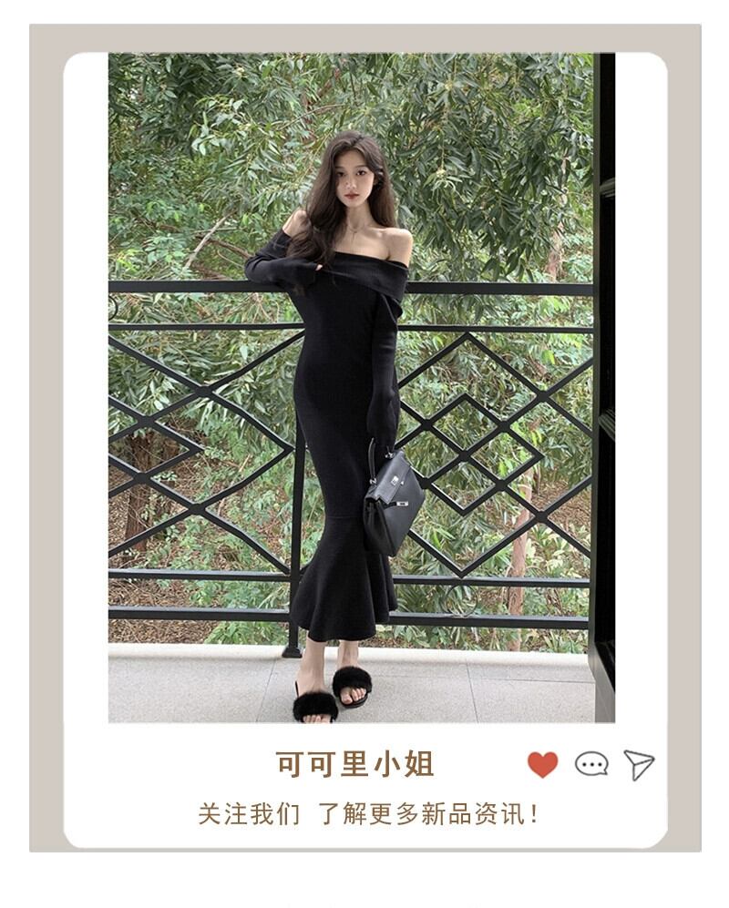 秋バージョン 2023 新しいスリムウエストワンショルダーボトミングスカートスリムオフショルダーニットロングドレスの女性 オータム 秋物 missk33351196873