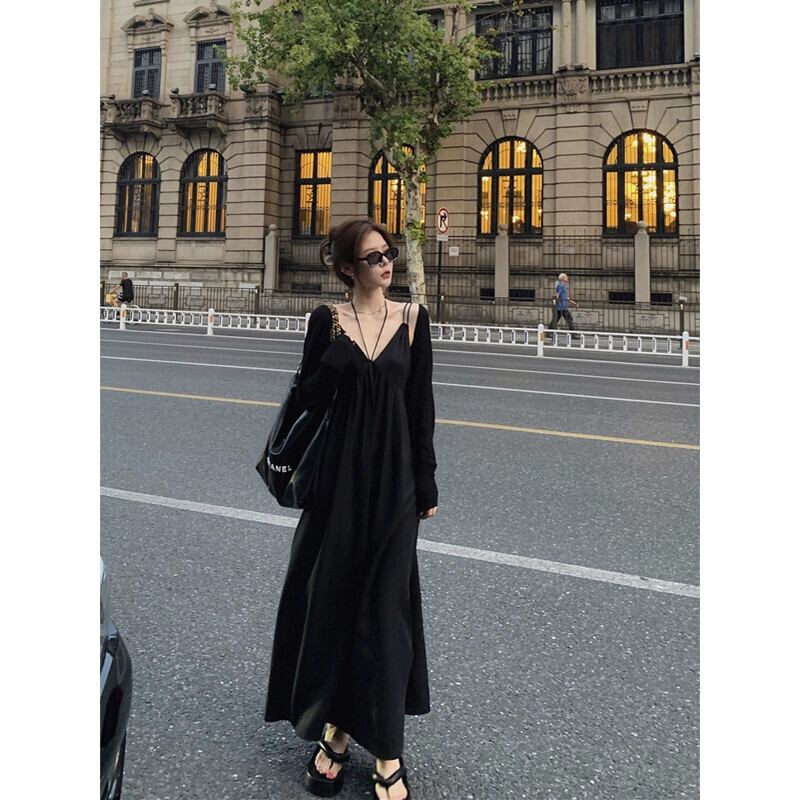 シックなハイエンドホルターネックサスペンダードレス + 長袖日焼け止めカーディガン女性秋 2023 新しいファッションスーツ ロング オータム 秋物 missk3709171903
