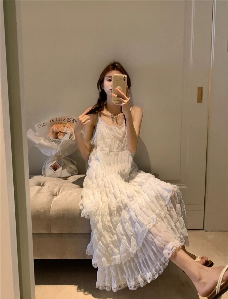 秋バージョン 2023 新しい緩くてファッショナブルなフレンチホワイト気質レースサスペンダーケーキドレス女性のスカート オータム 秋物 missk5807736708