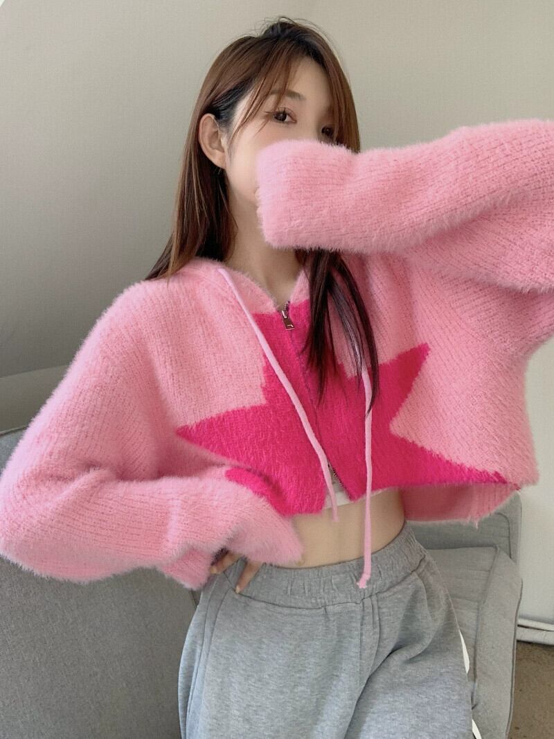 エド怠惰なスタイルのフード付きセータージャケット女性の秋冬 2023 新しい純粋な欲望ショートルーズ長袖カーディガン ロング オータム 秋物 ウィンター 冬物 ピュア missk68080398269