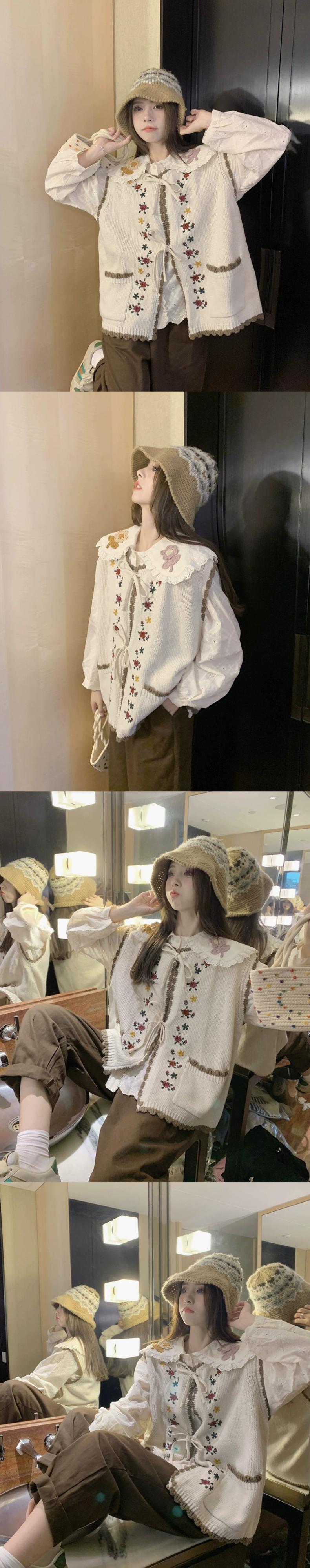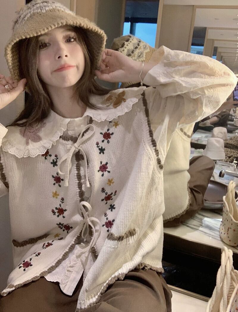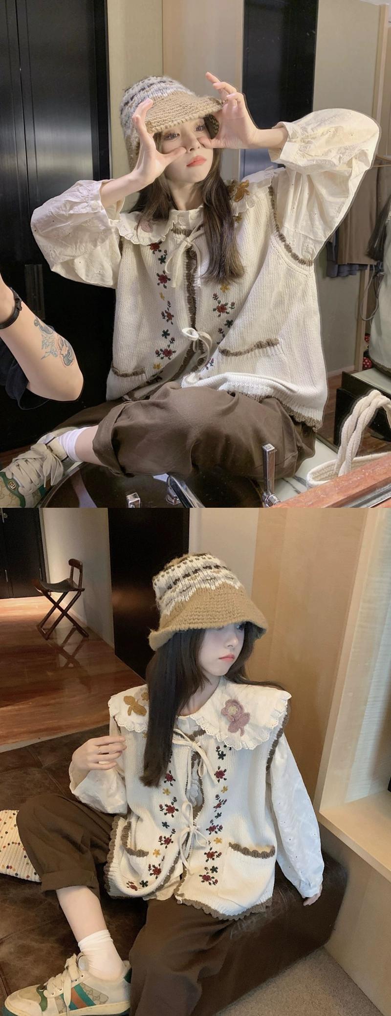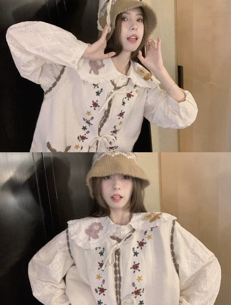 刺繍ストラップ付きニットベスト+ドールカラーシャツ女性2023年秋新スタイル3点セット レッド オータム 秋物 missk46648816852