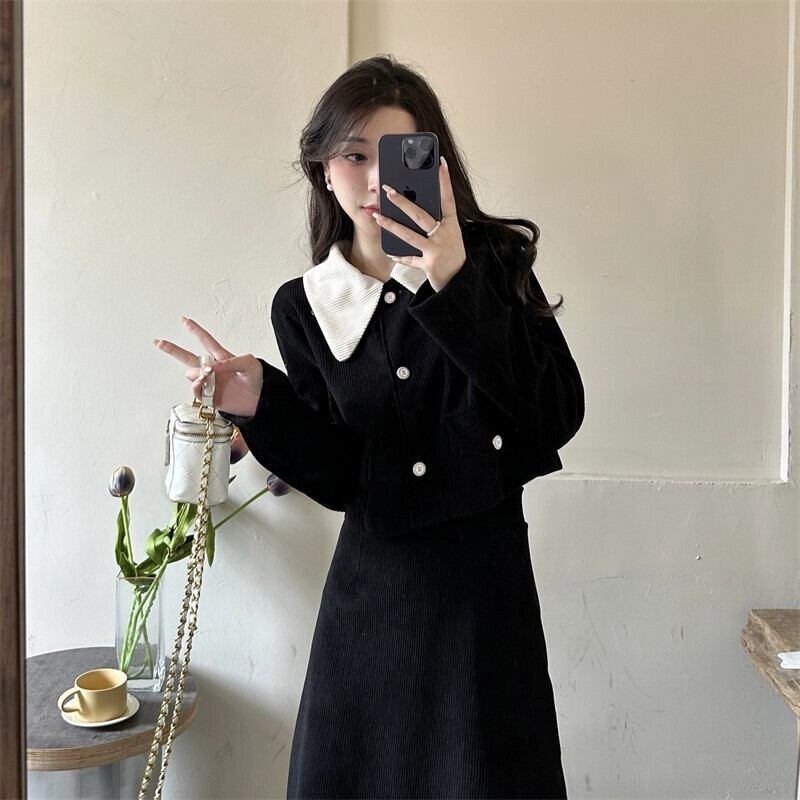 コーデュロイドールカラーショート長袖ジャケットミドル丈スカートレディース2023秋新作フレンチ2点セット ロング オータム 秋物 missk39603784097