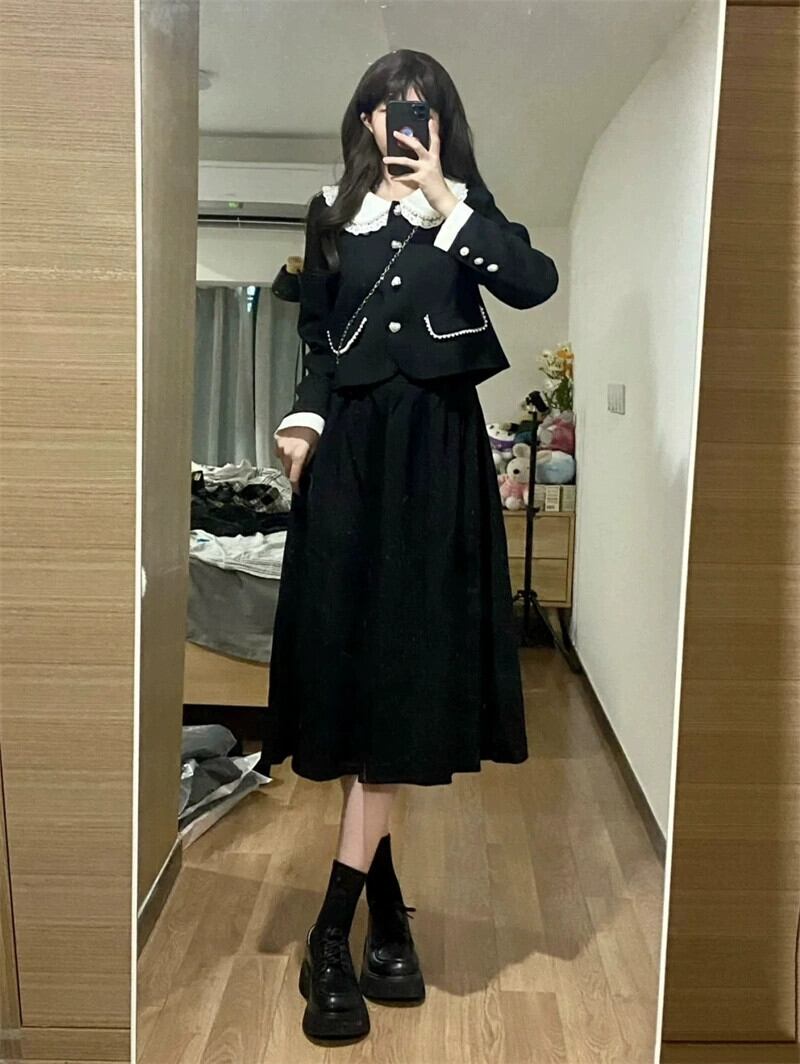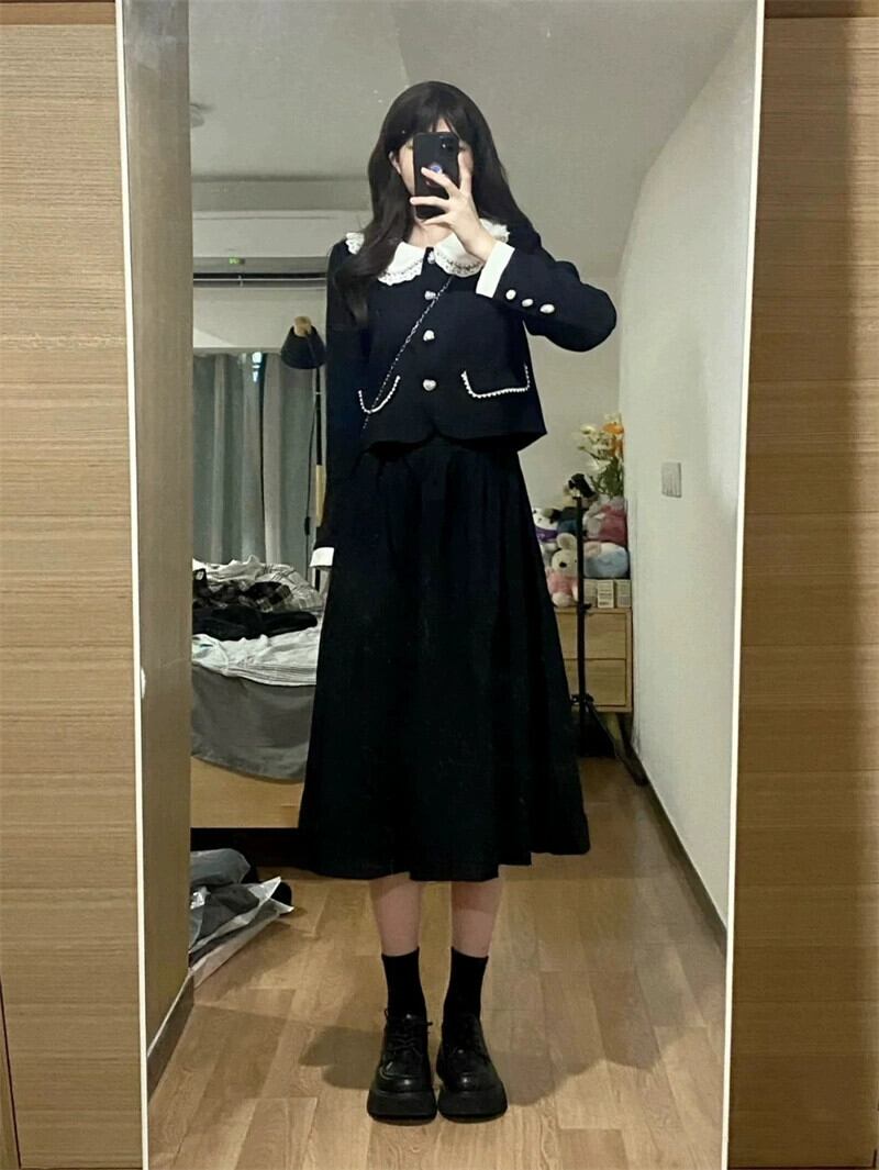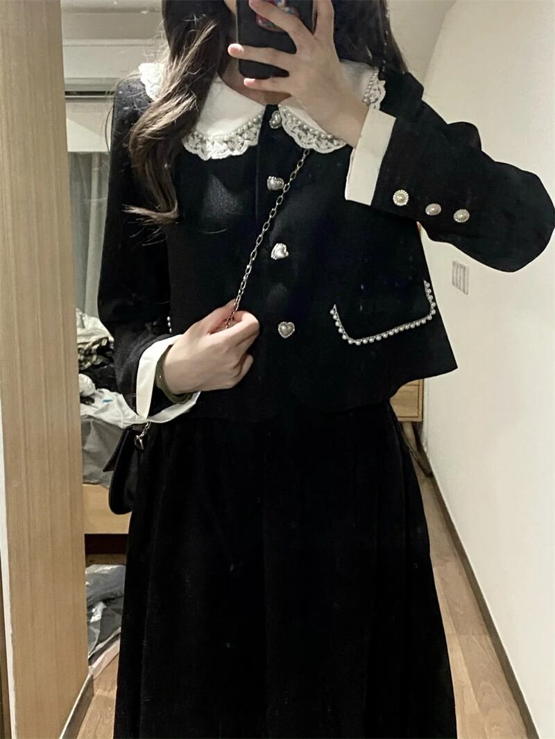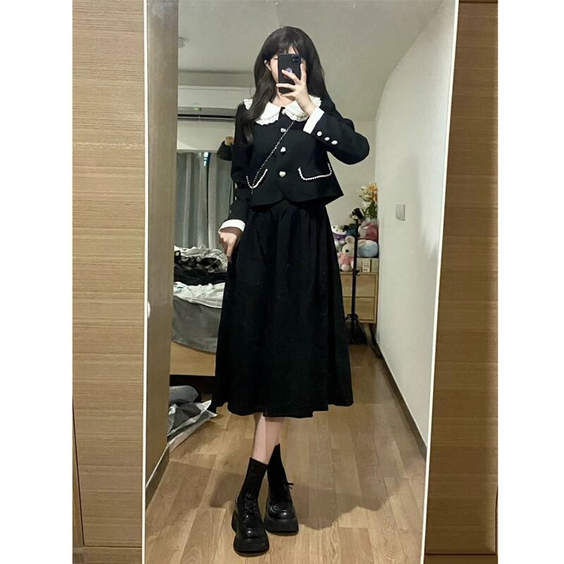 Xiaoxiangfeng 人形の襟の気質長袖ショートジャケットウエストスカート女性の秋 2023 スーツ ロング オータム 秋物 missk75426724590