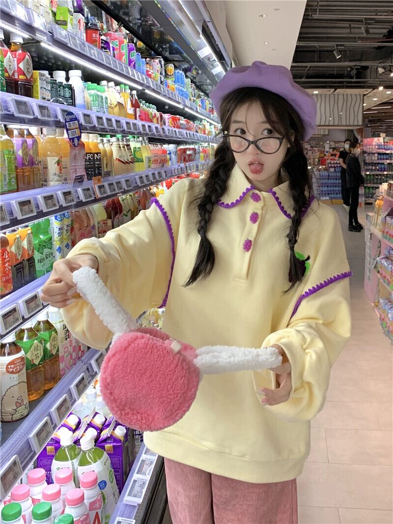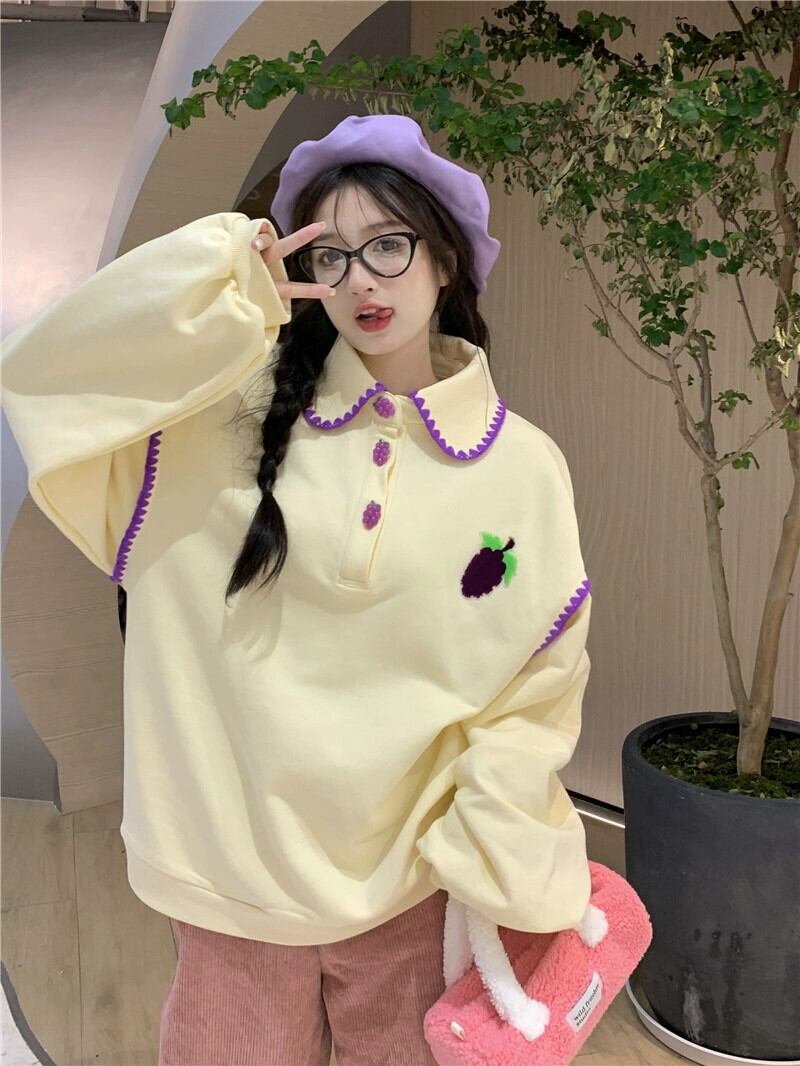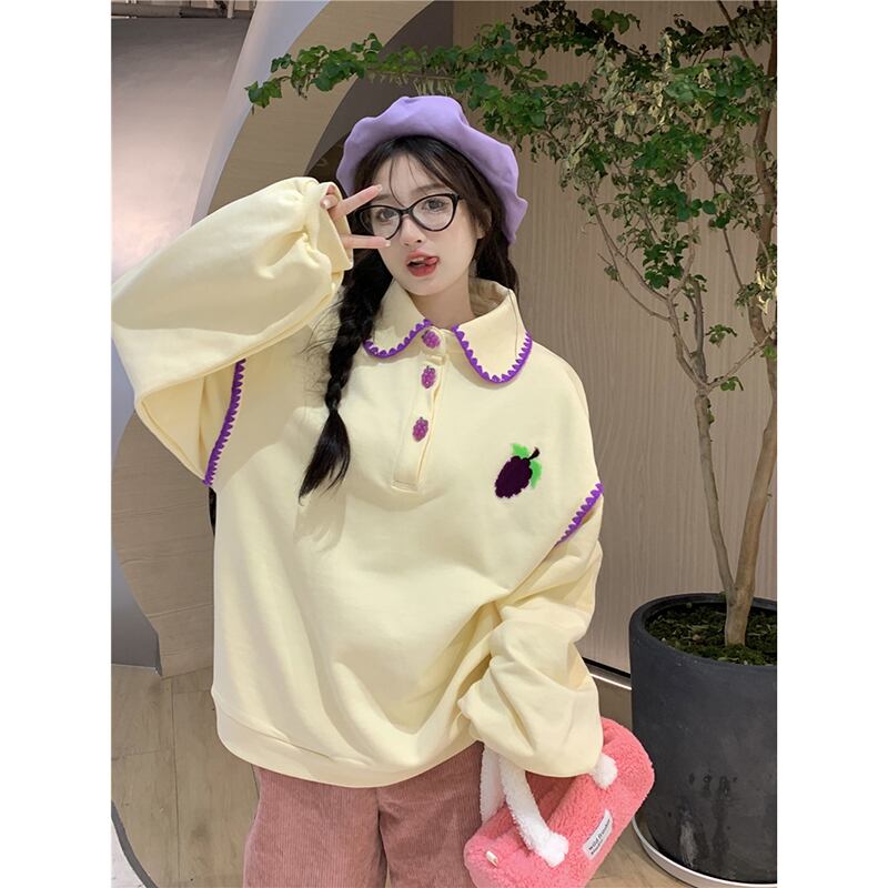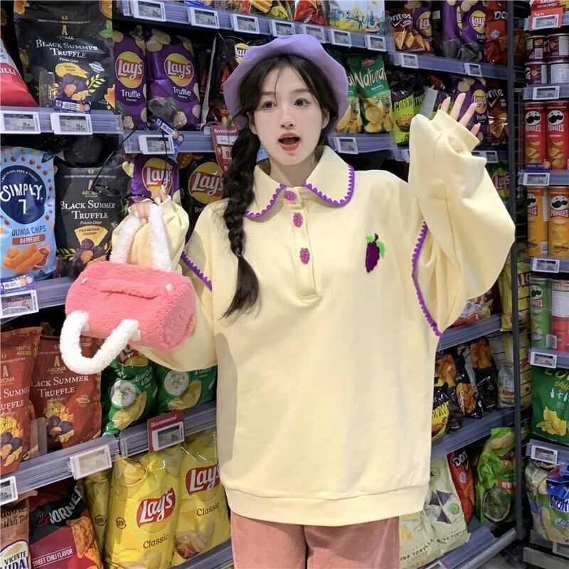 甘いラペルカラーブロック長袖スウェットシャツジャケット女性 2023 秋の新デザインカラーブロックルーズプルオーバートップ ロング 大人ガーリー スウィート キュート カジュアル オータム 秋物 missk10844753501