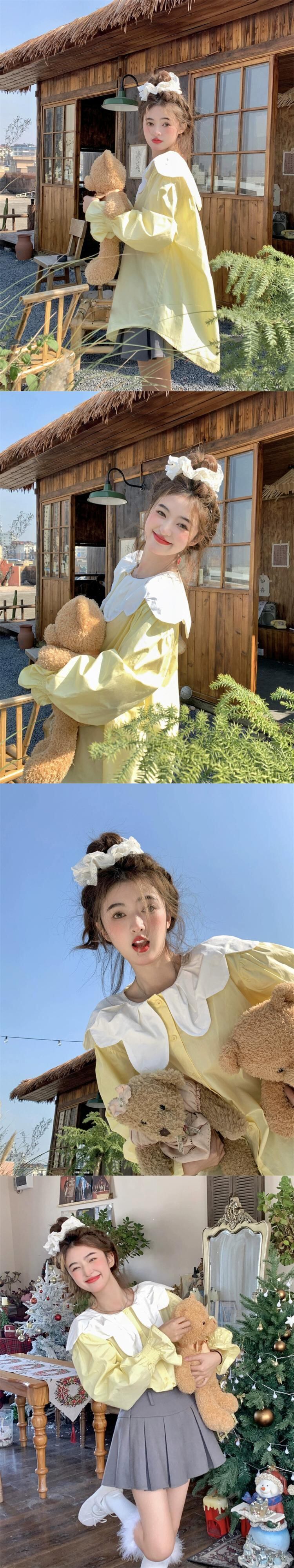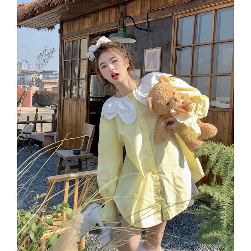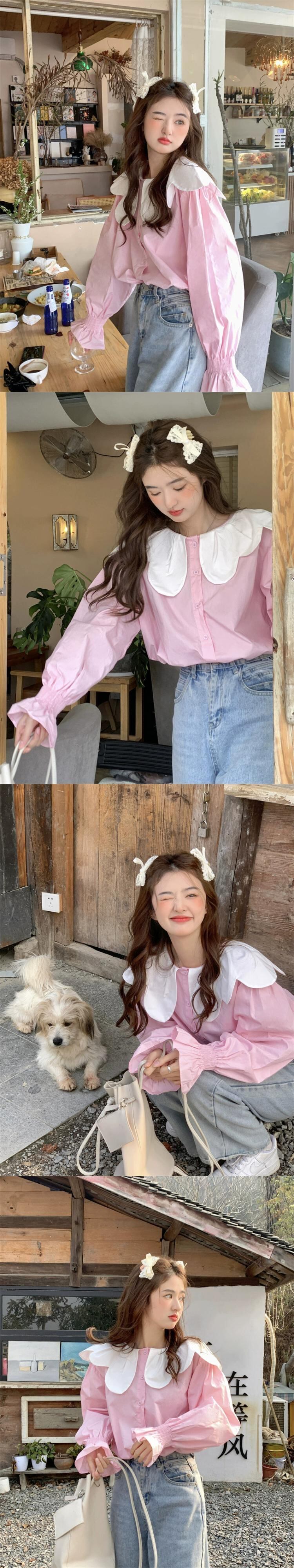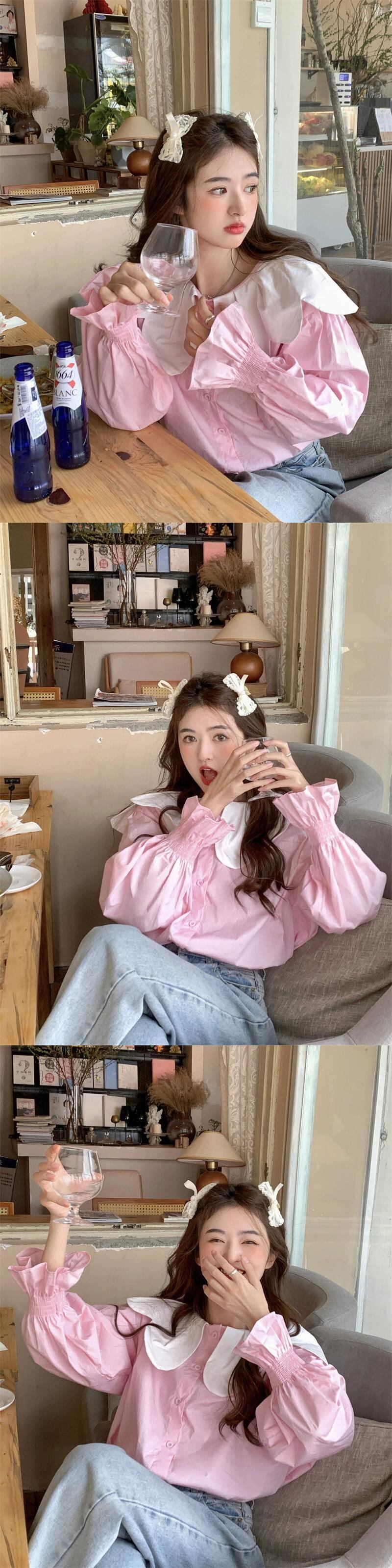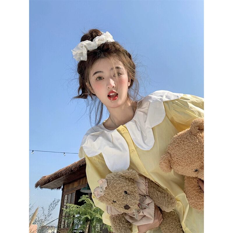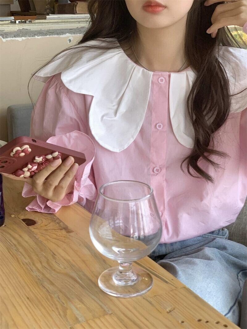 ベビードール襟トランペットスリーブシャツレディース2023秋新作甘いデザイン西洋風ルーズ長袖トップ ロング 大人ガーリー スウィート キュート カジュアル オータム 秋物 missk43348816031