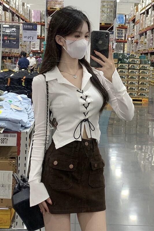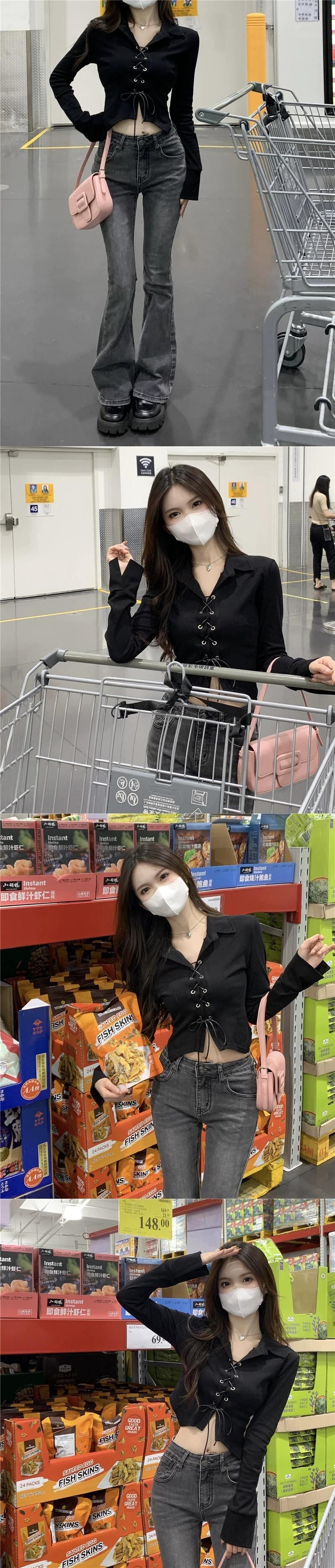 夏バージョン 2023 新デザインストラップスリムショートポロカラー不規則長袖 Tシャツレディース ロング サマー 夏物 missk52958195014