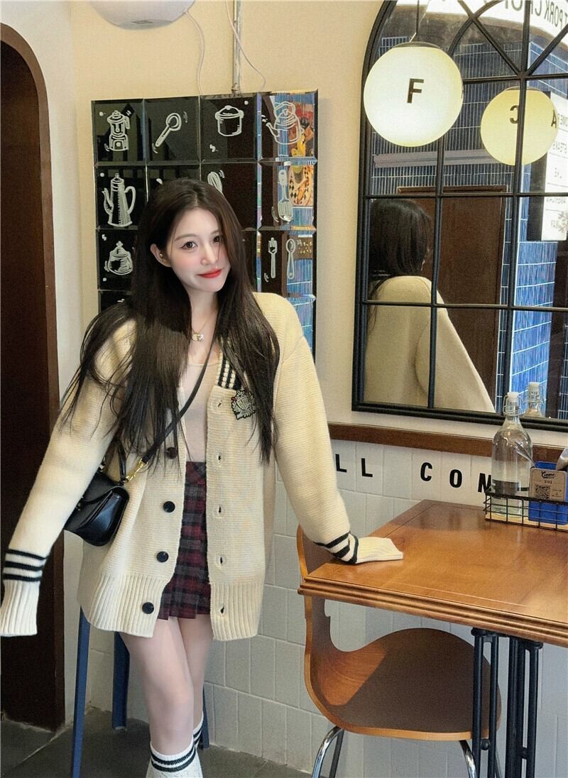 雰囲気カレッジスタイルシックな V ネックセータージャケット秋 2023 新しいファッションファッショナブルなニットカーディガン女性 オータム 秋物 Vネック missk39356308142