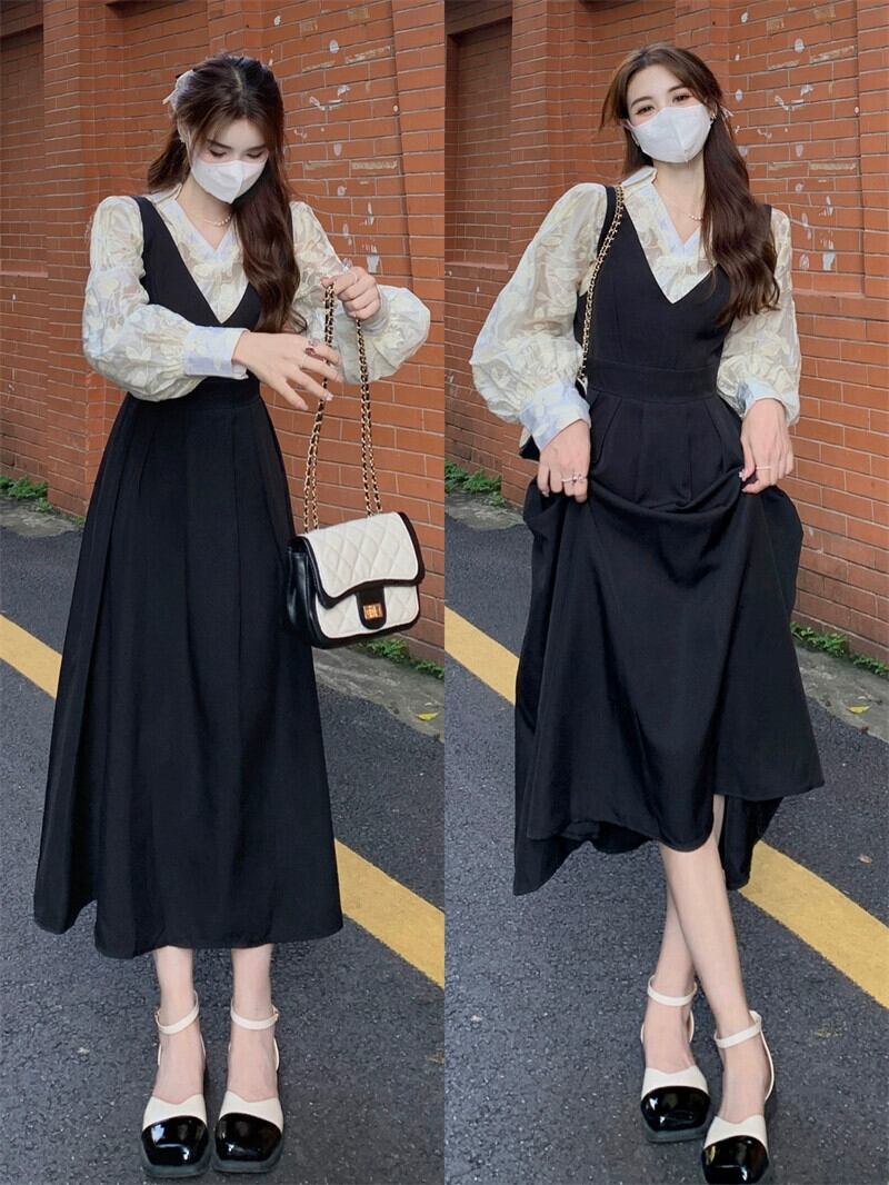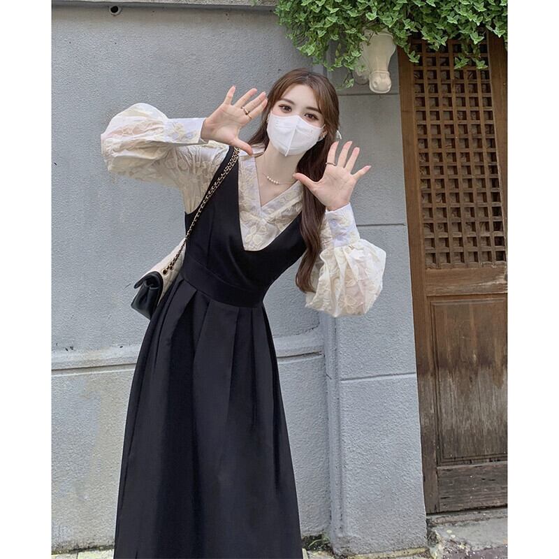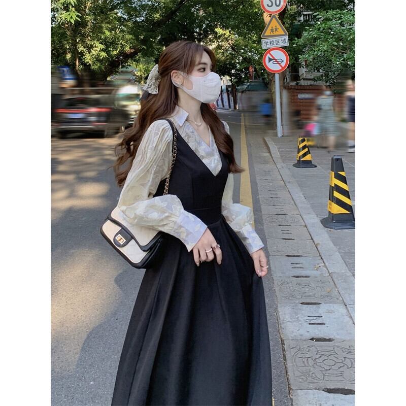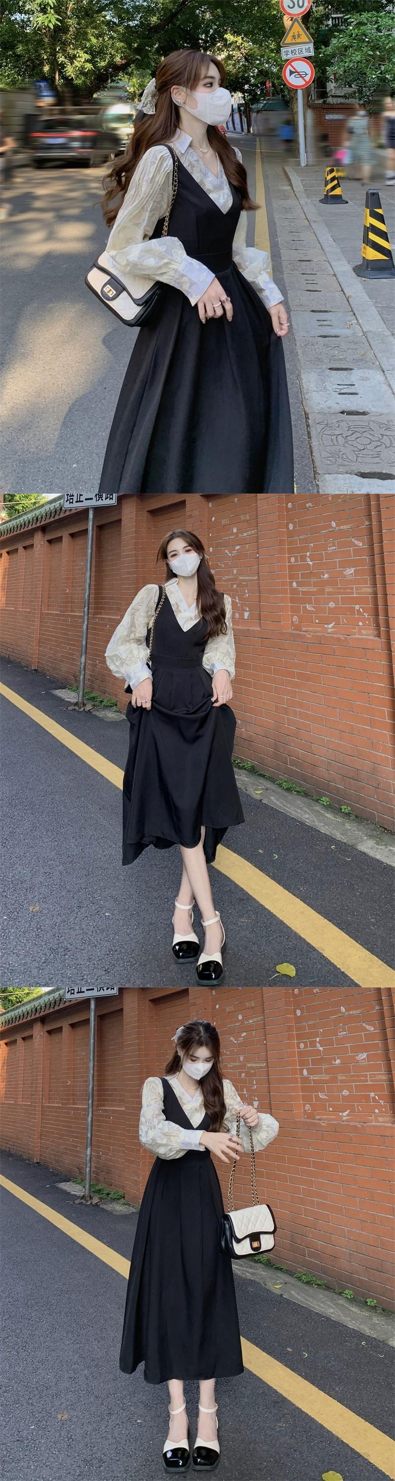 フレンチレトロ V ネックベストドレス女性秋 2023 新しいシックなウエスト痩身ミッドレングス A ラインスカート オータム 秋物 Vネック Aライン missk26033981433