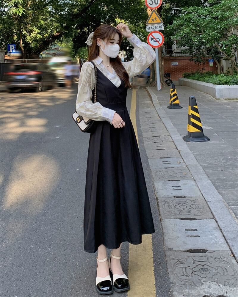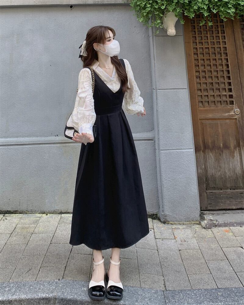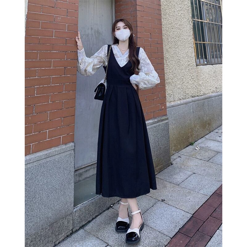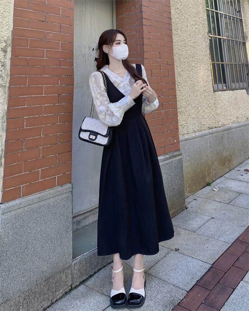 フレンチレトロ V ネックベストドレス女性秋 2023 新しいシックなウエスト痩身ミッドレングス A ラインスカート オータム 秋物 Vネック Aライン missk26033981433