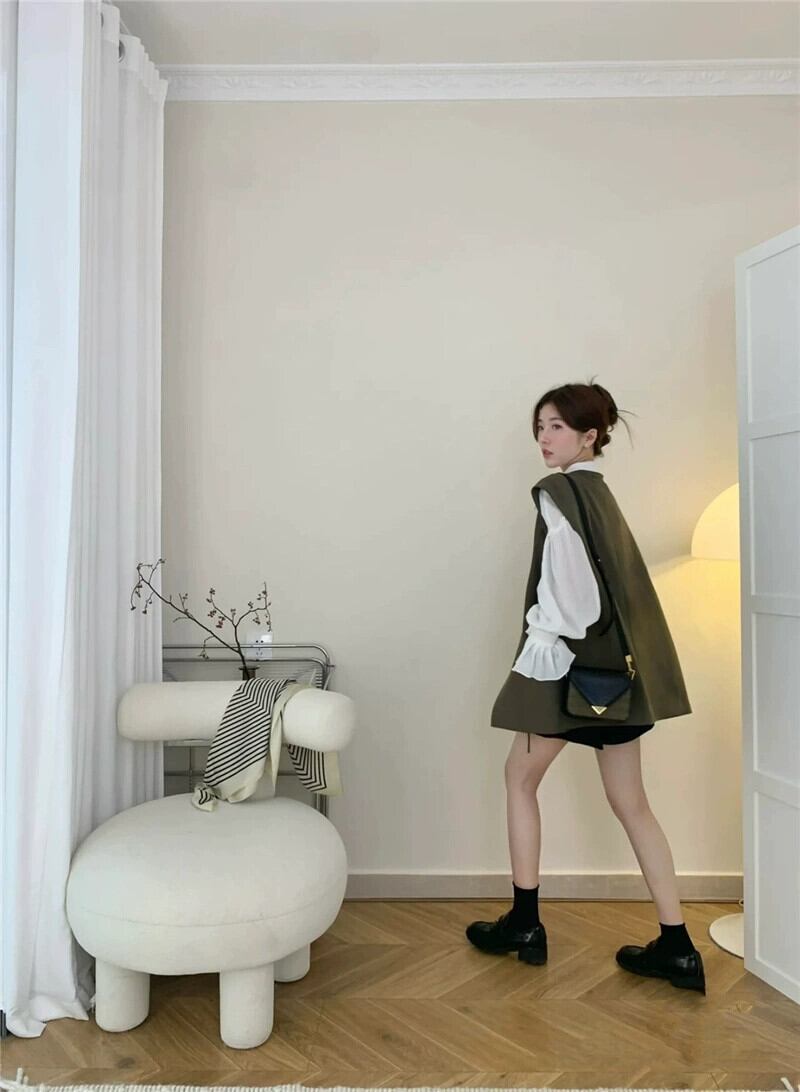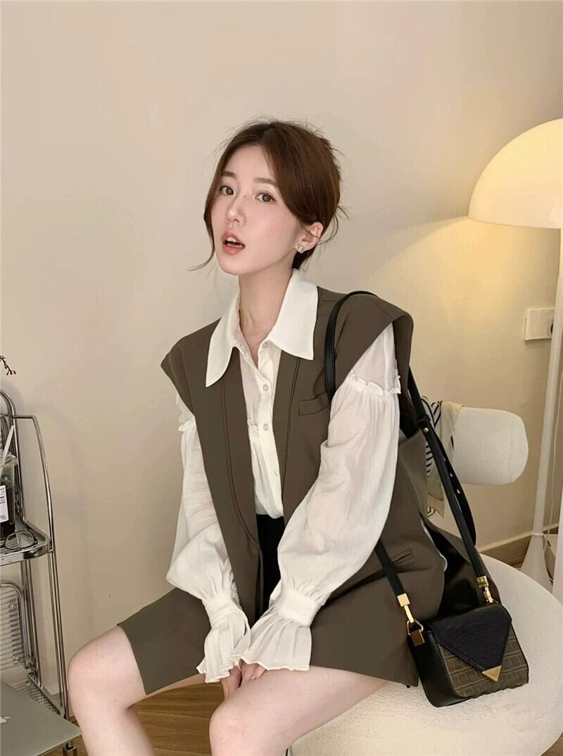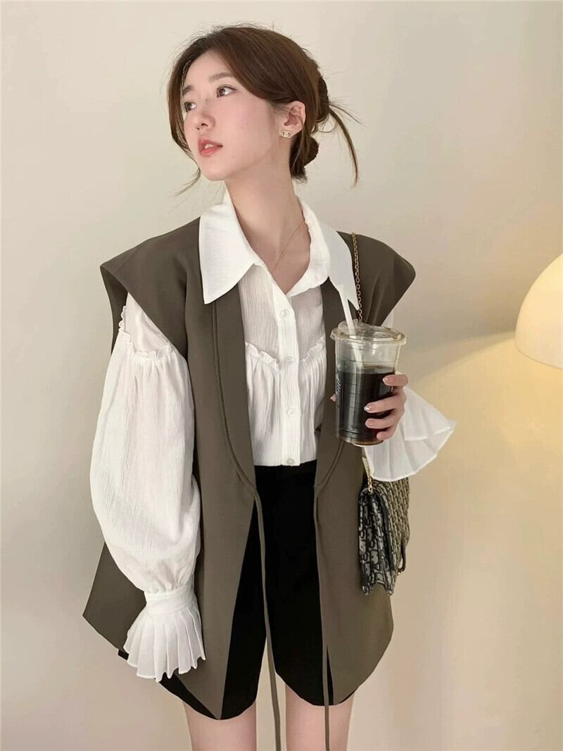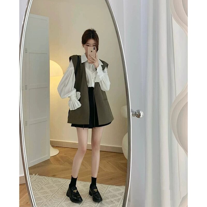 ベル袖キノコデザイン長袖シャツとレイヤードベストベスト女性秋 2023 新しいファッションスーツ ロング レッド オータム 秋物 missk16107331261