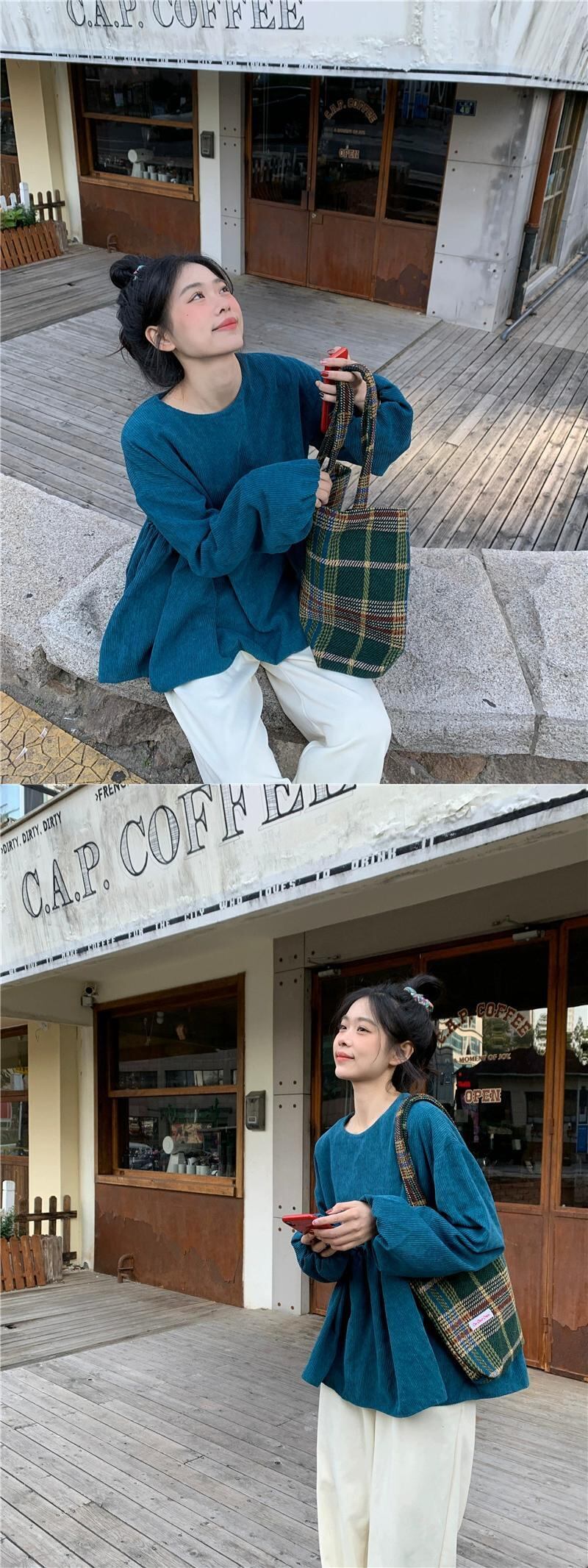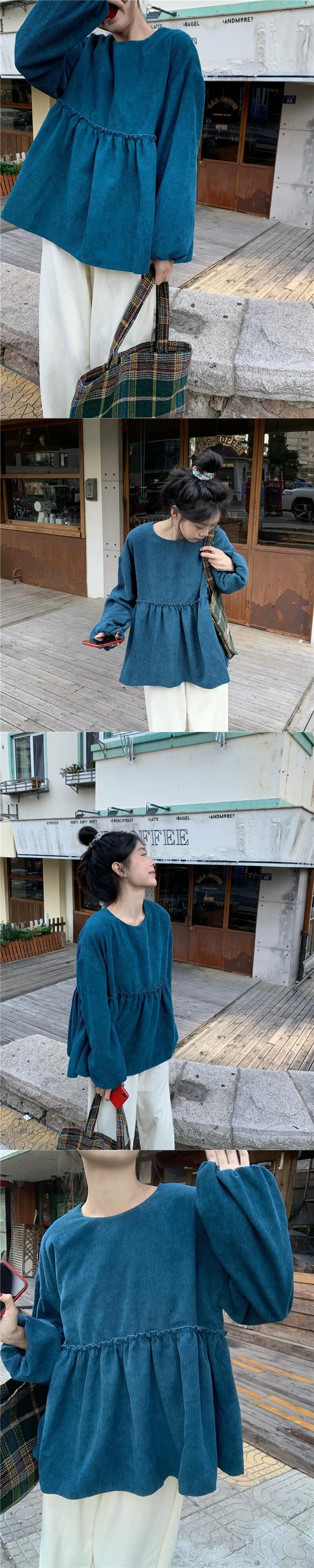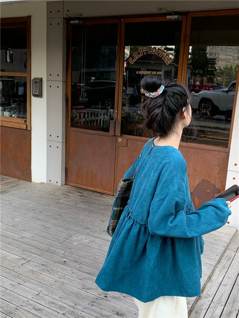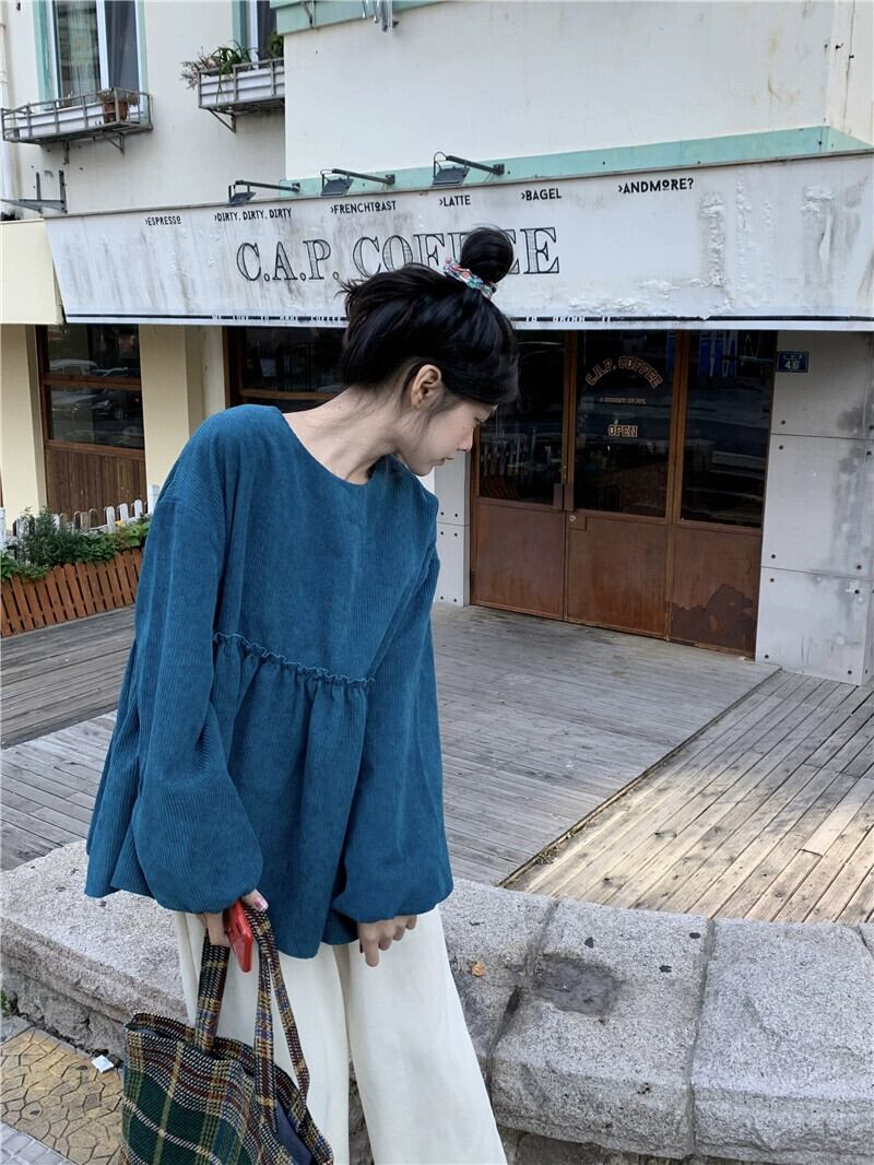 コーデュロイシャツレディース2023秋冬新作フレンチレトロパフスリーブデザインルーズ長袖ベビードールシャツ ロング オータム 秋物 ウィンター 冬物 missk45366082479