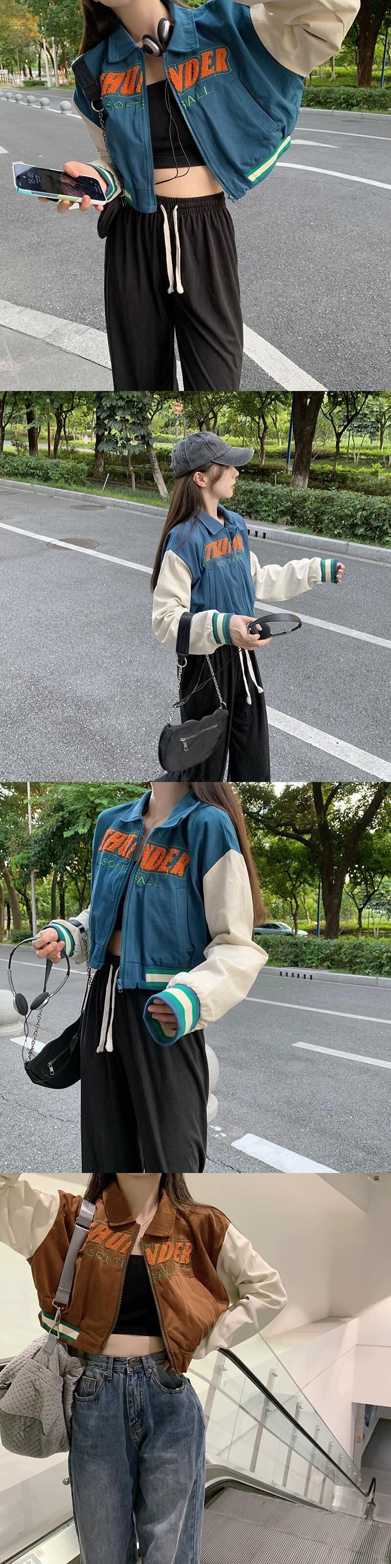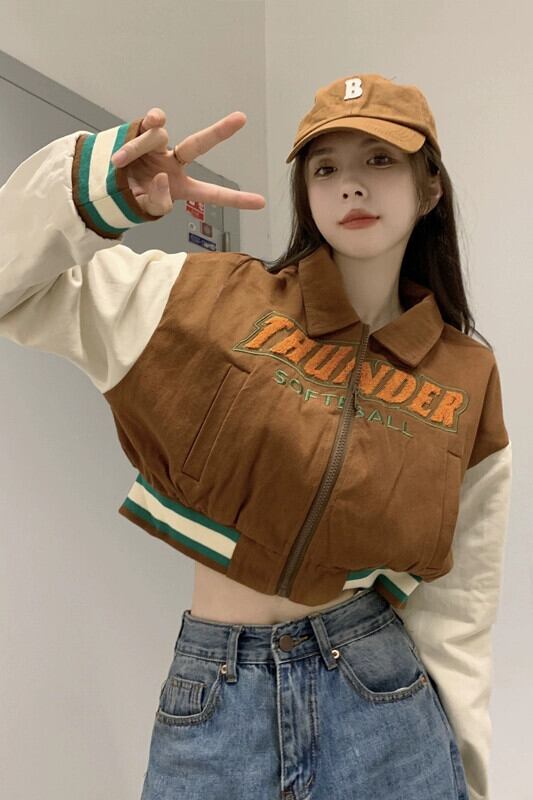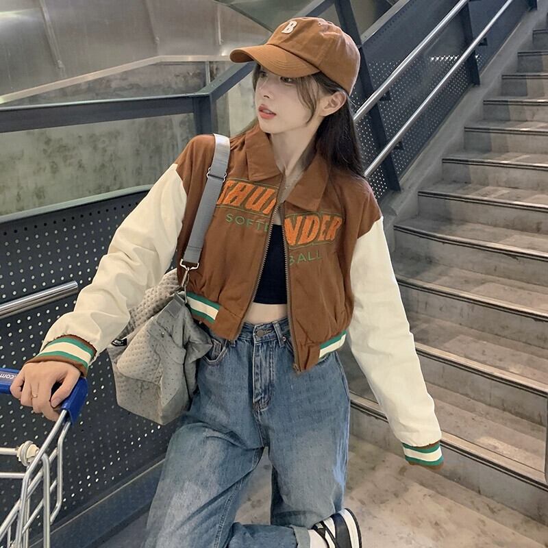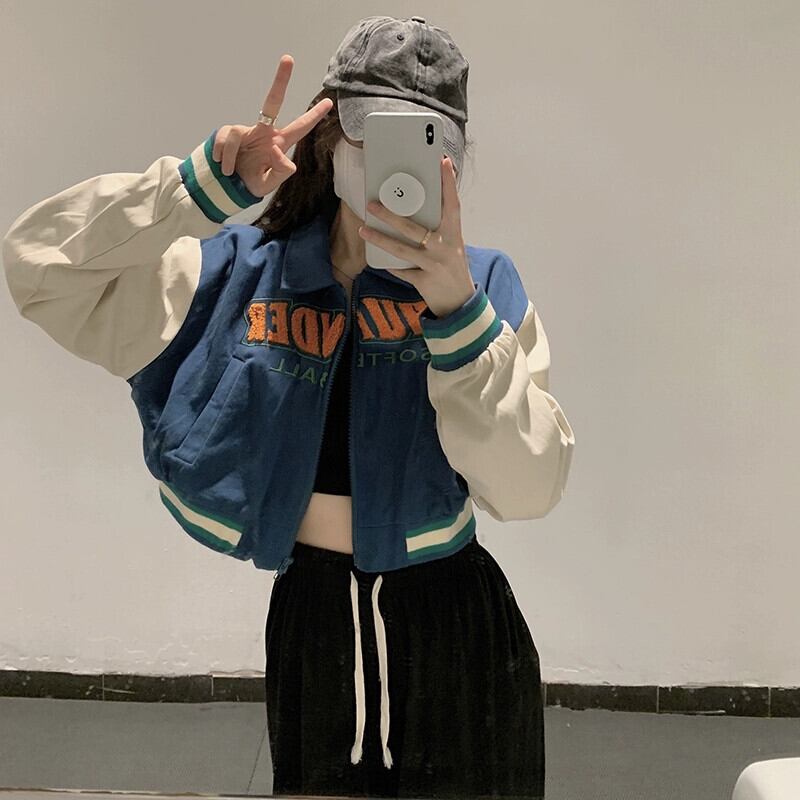 アメリカンレトロ野球ユニム秋冬 2023 新しいショートスタイル刺繍文字ルーズコントラストカラー長袖ジャケット女性 ロング レッド オータム 秋物 ウィンター 冬物 missk32049522796