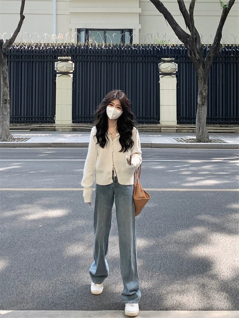 ダブルジッパーデザインショートセータージャケット女性の秋冬 2023 新しいフード付きルーズ長袖ニットトップ ロング オータム 秋物 ウィンター 冬物 missk97442363429