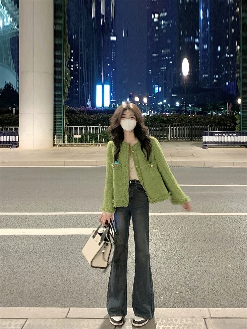 フレンチスタイルツイードジャケット秋冬2023新しいレトロハイエンドグリーンカーディガントップ女性のトレンディな オータム 秋物 ウィンター 冬物 missk60140283674