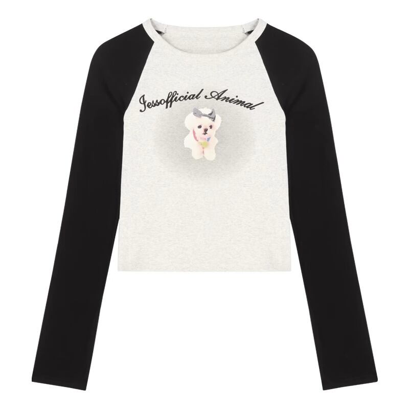 アメリカンホットガールボトリングシャツ女性の秋2023漫画プリントスリムフィットコントラストカラーショート長袖Tシャツ ロング オータム 秋物 missk96518548761