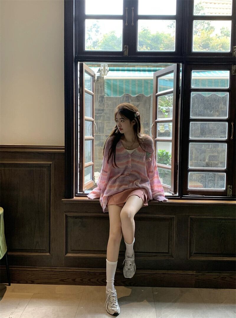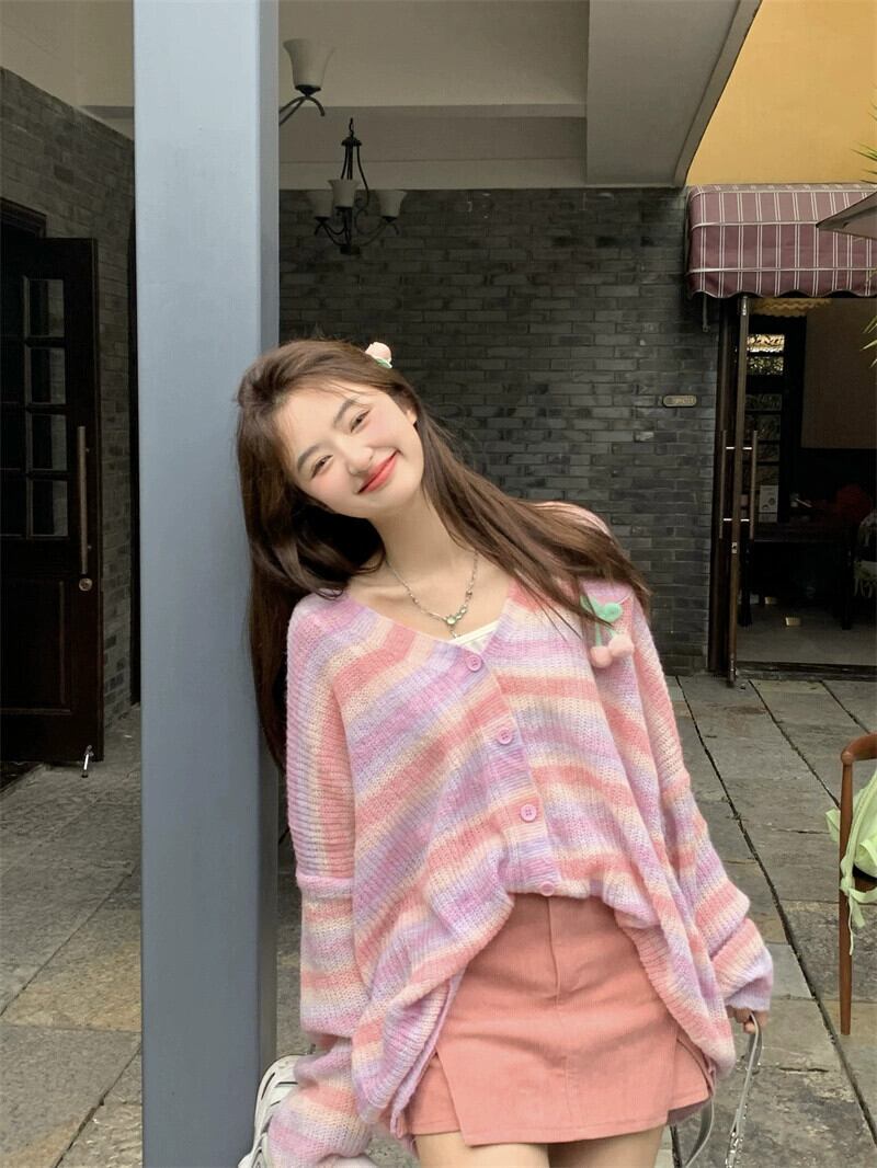 色:レインボーストライプセーターカーディガン