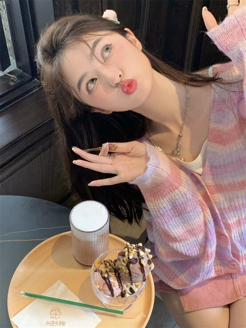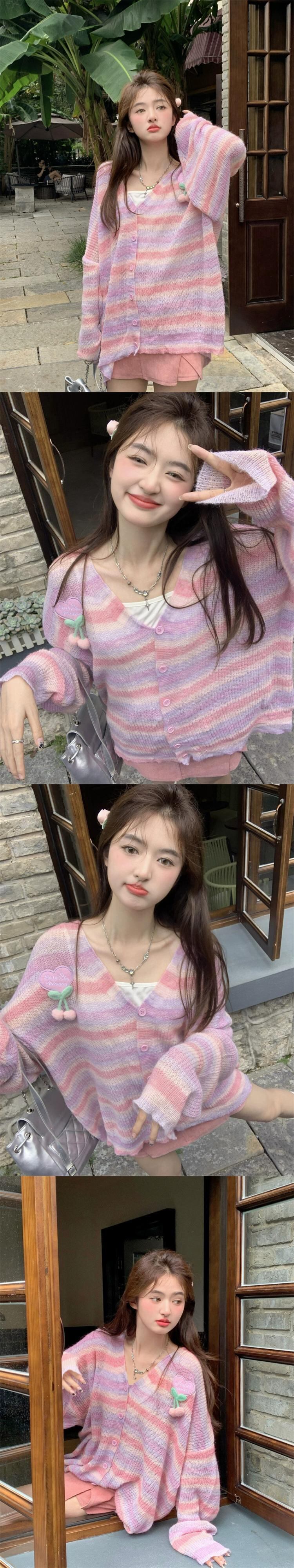 甘い y スタイルのカラフルなストライプのセーター秋の新立体チェリーバットスリーブ V ネックカーディガントップ女性 大人ガーリー スウィート キュート カジュアル オータム 秋物 Vネック missk62189084549