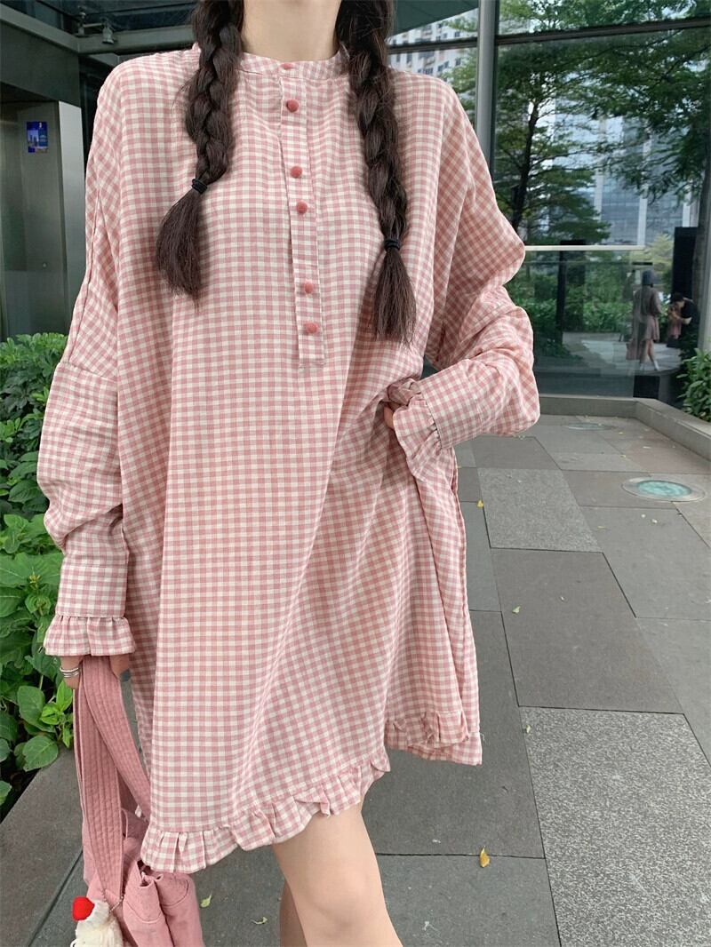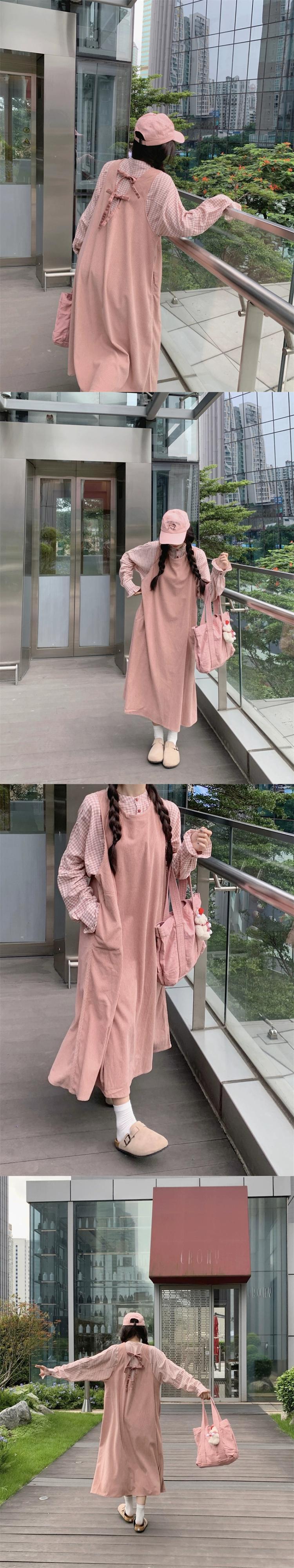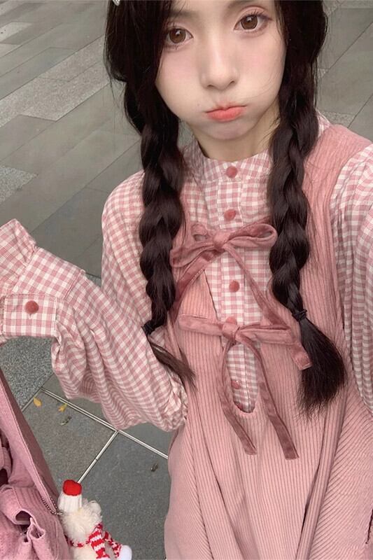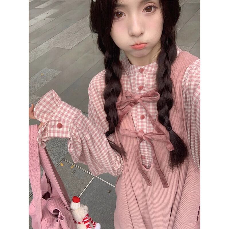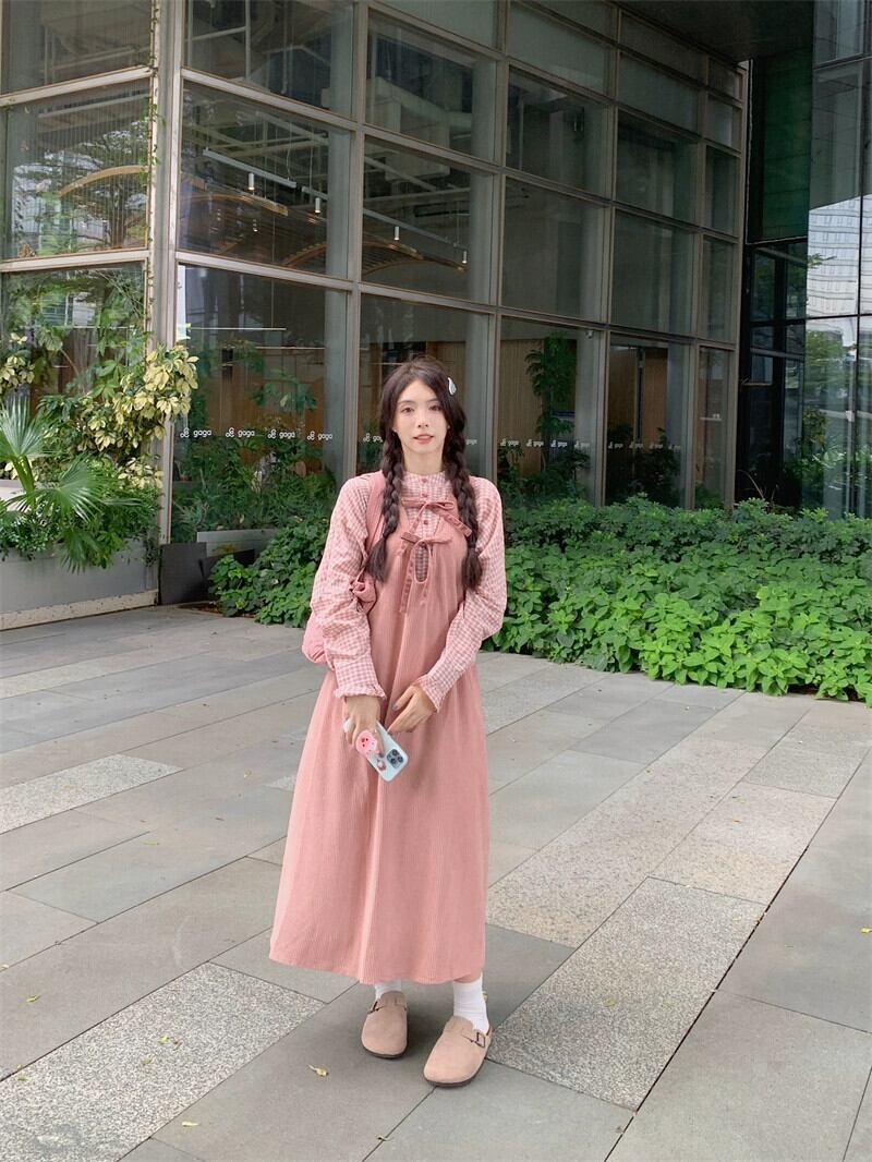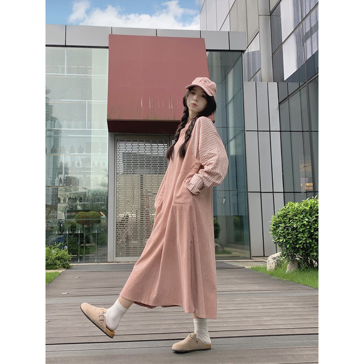 甘い老化コーデュロイデザインサスペンダードレスチェック柄シャツ女性秋 2023 新しいファッションスーツ 大人ガーリー スウィート キュート カジュアル オータム 秋物 missk63201018066