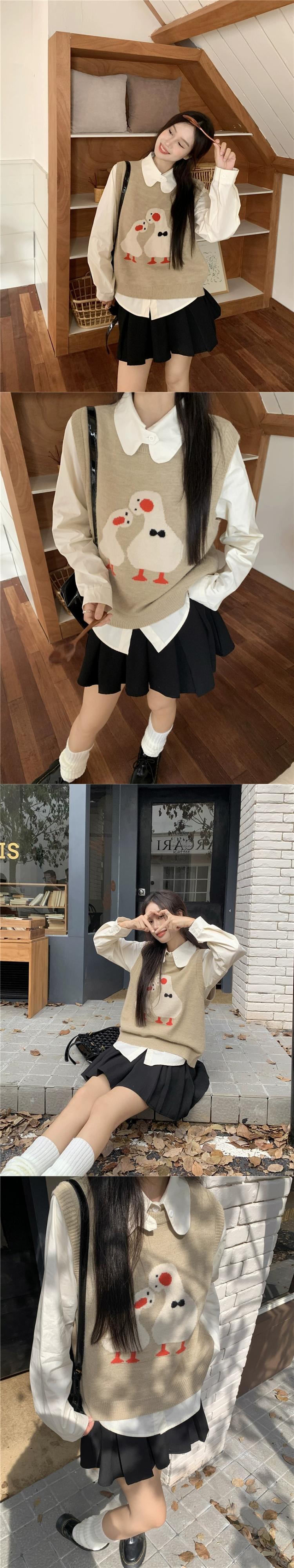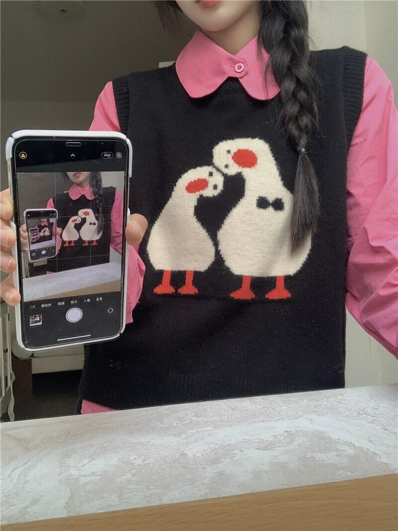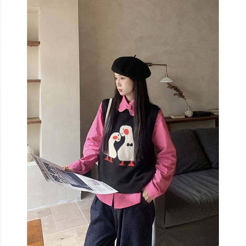 色:バラのシャツ,アプリコットシャツ,黒のニットベスト,アプリコットニットベスト