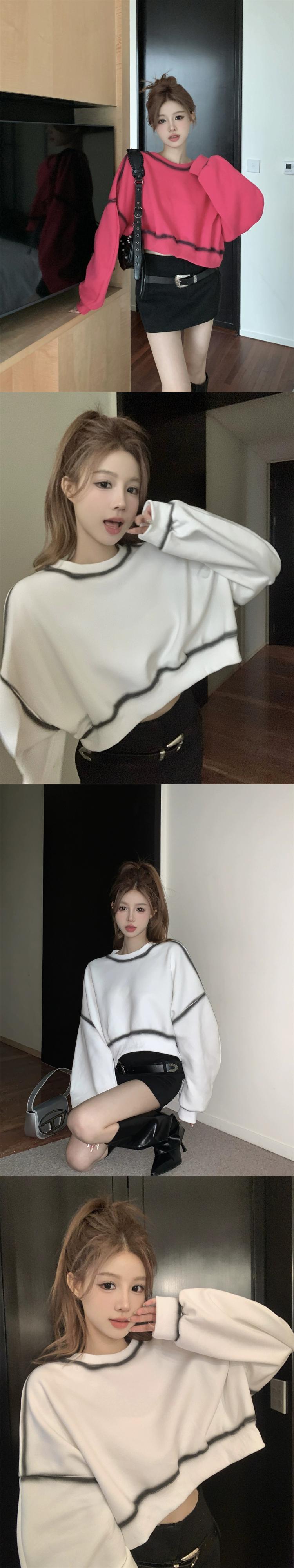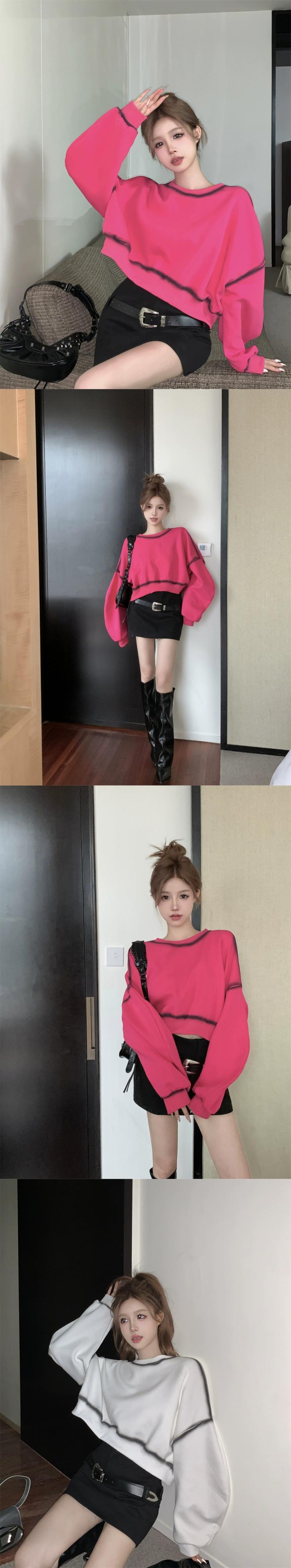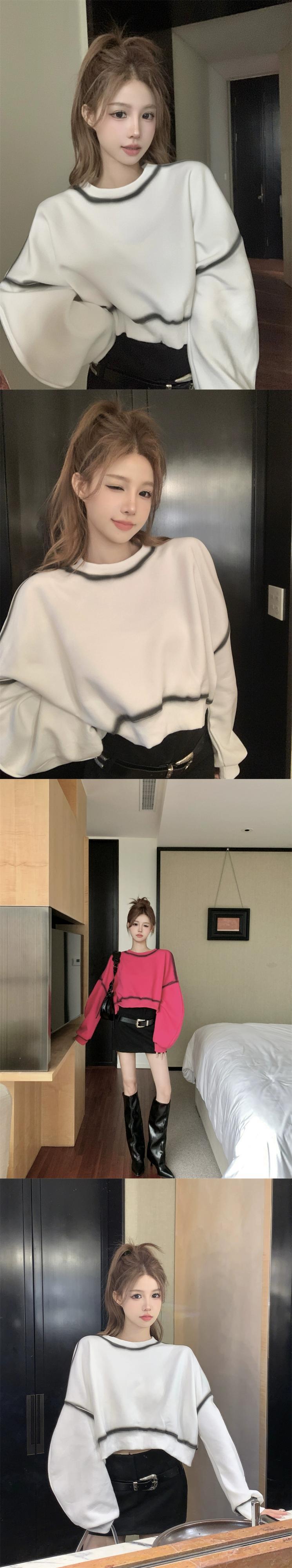 グラデーションコントラストカラー長袖トレーナー女性秋バージョン 2023 新デザインルーズショートパフスリーブトップトレンディ ロング オータム 秋物 missk56200574759