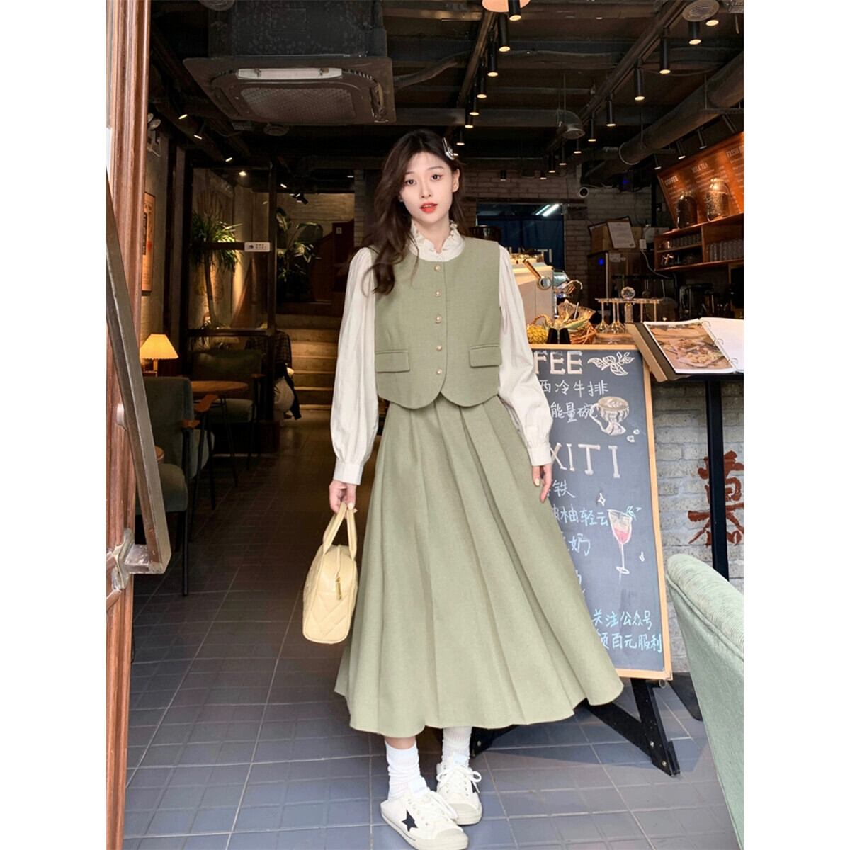 -端気質チョッキ、立ち襟、長袖シャツ、スカート、レディース 2023 秋の新作ファッション 3 点セット ロング オータム 秋物 missk53380961621