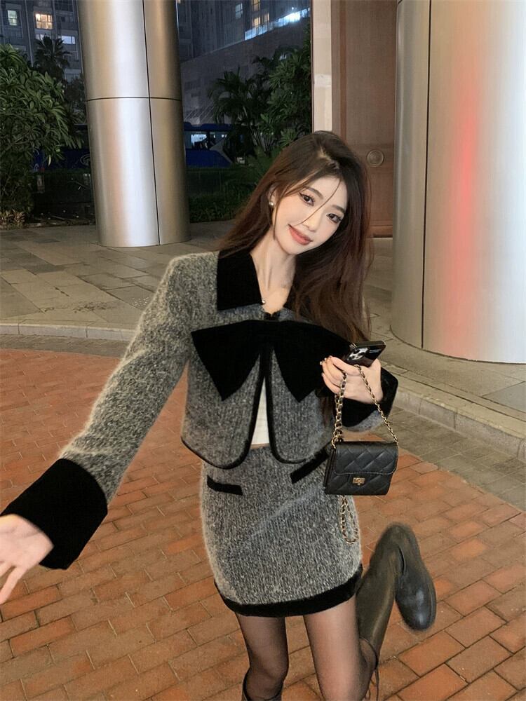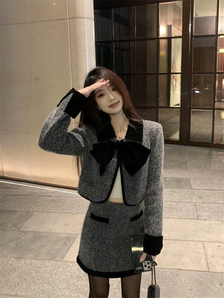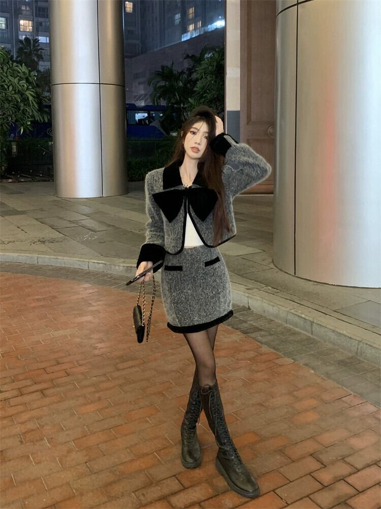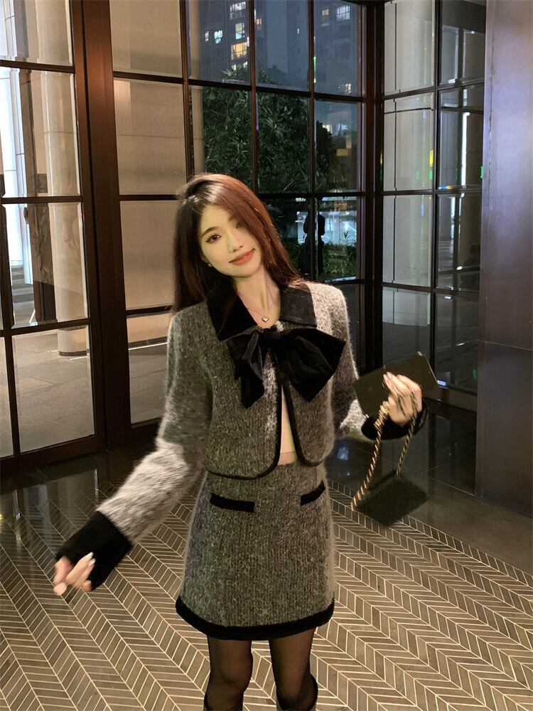 秋のレトロ2023新しいスリムで高級なウールの長袖ジャケット+ハイウエストスカートの女性のトレンディな2点セット ロング オータム 秋物 missk39952986637