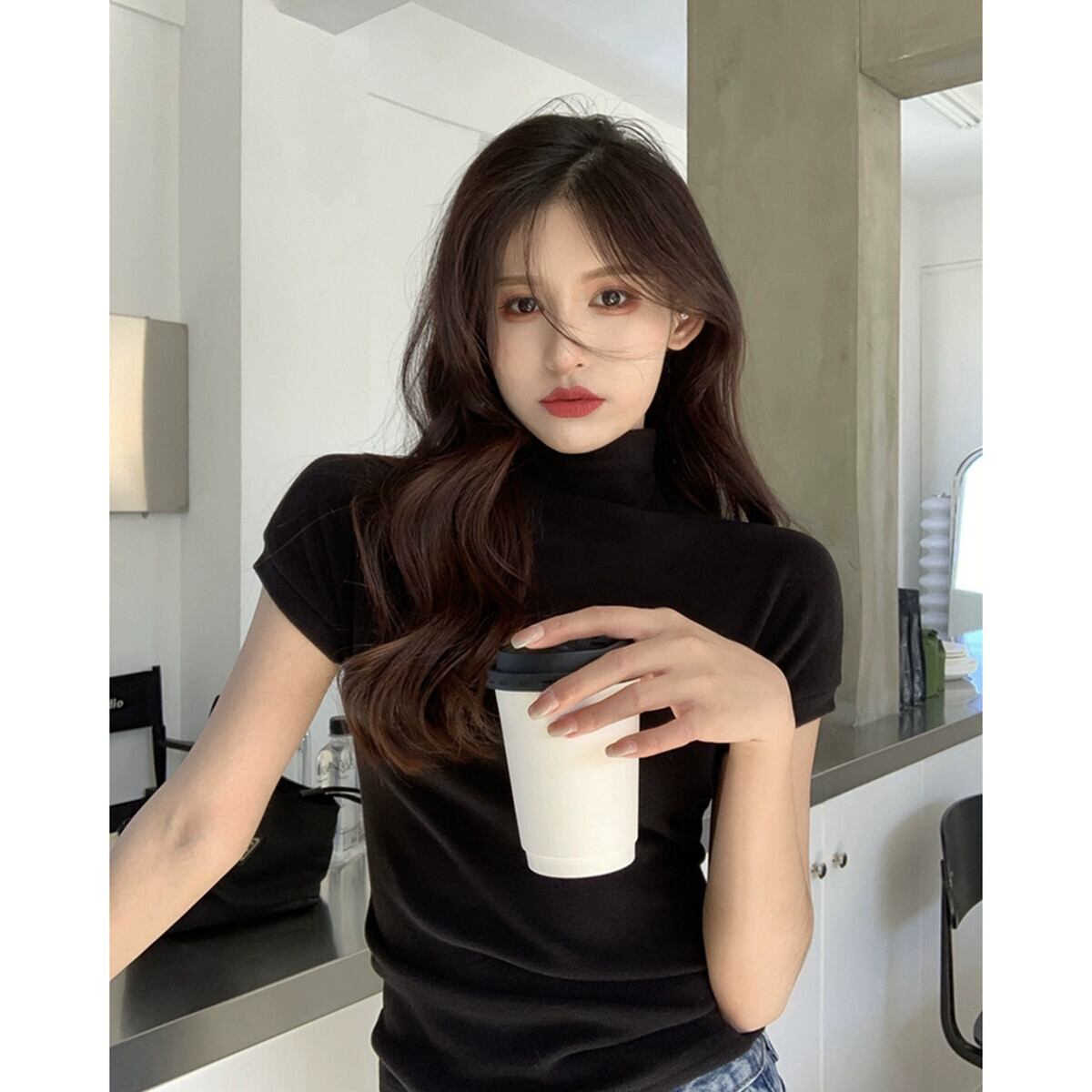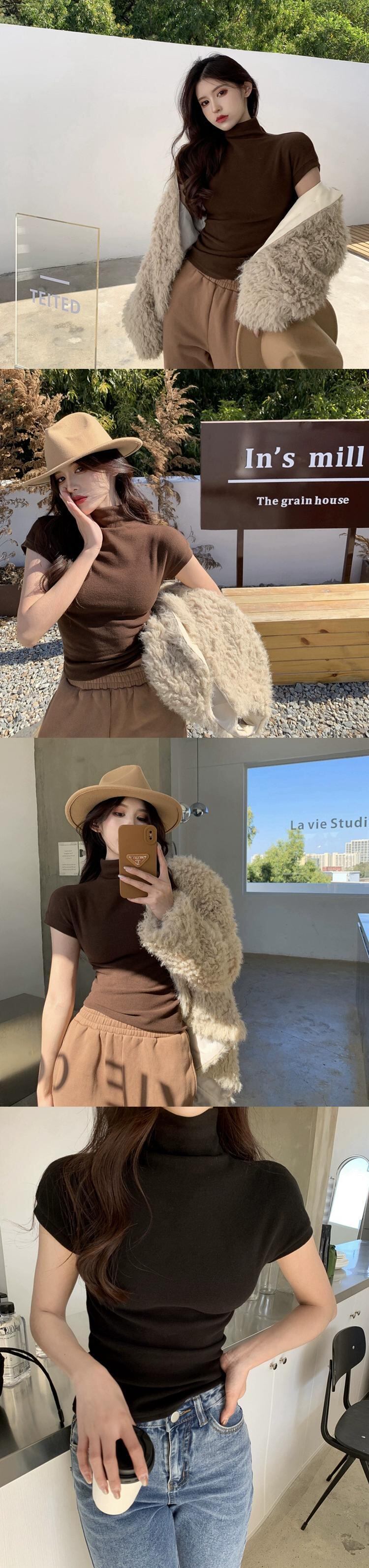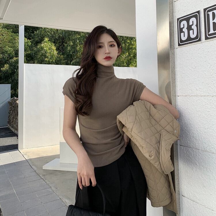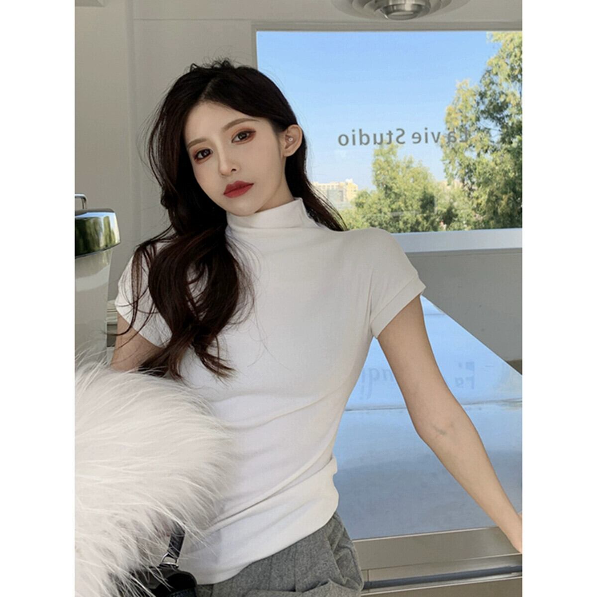 ハーフタートルネック起毛ボトム Tシャツ女性秋バージョン 2023 新しいスレッドスリムフィットインナー半袖トップ オータム 秋物 missk52565328387