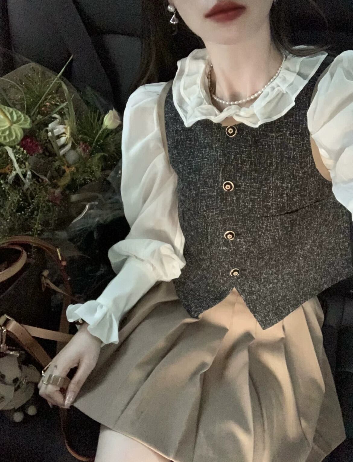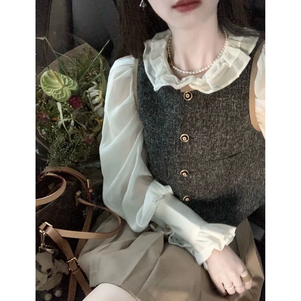 フランスのニッチな高級ベスト、宮殿スタイルのパフスリーブシャツ、プリーツスカート、女性の2023年秋の新作スーツ レース オータム 秋物 missk71621030651