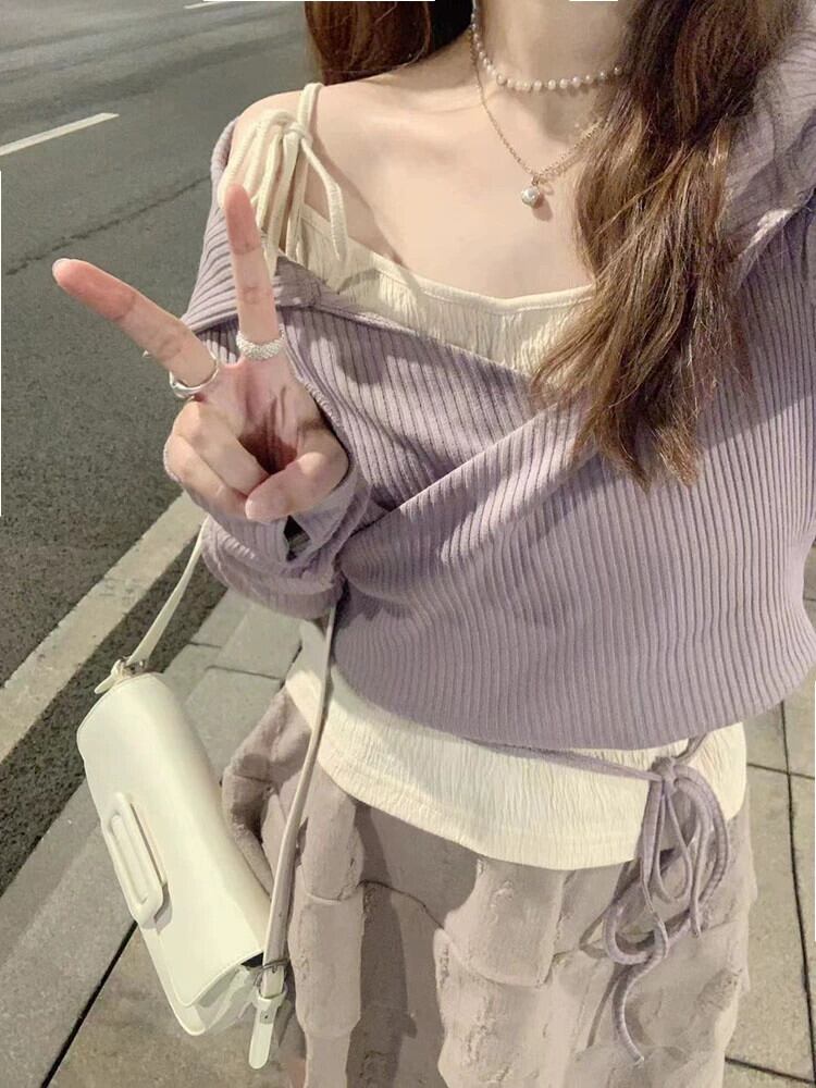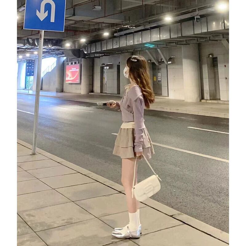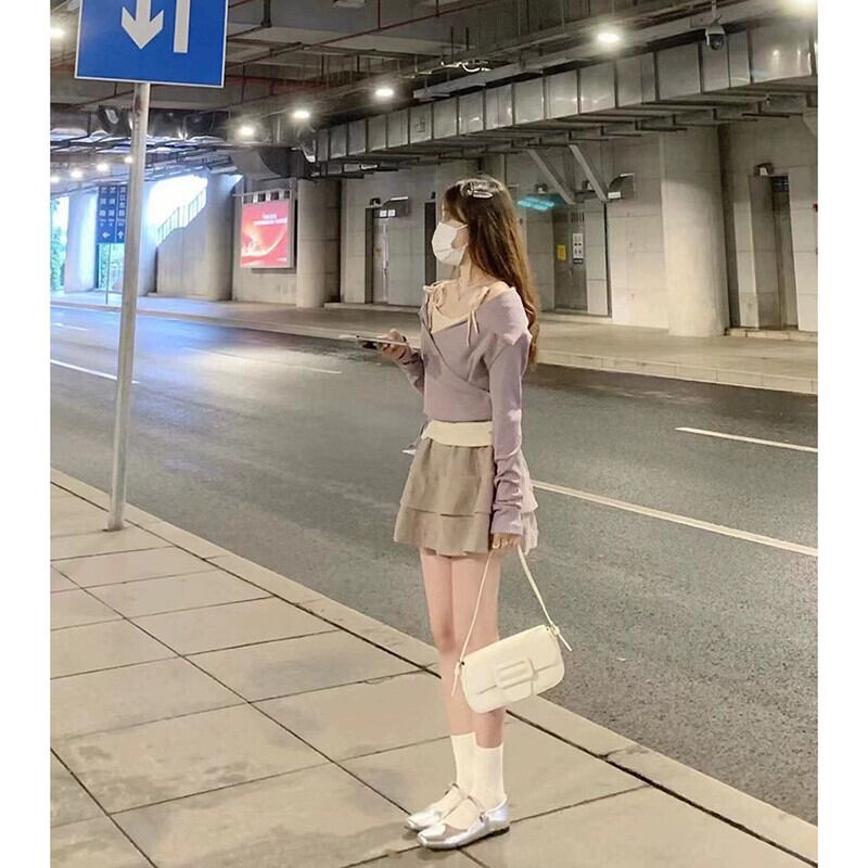 バレエスタイルデザインショート長袖セーターキャミソールスカート女性 2023 秋の新作 3 点セット ロング オータム 秋物 missk10823440917