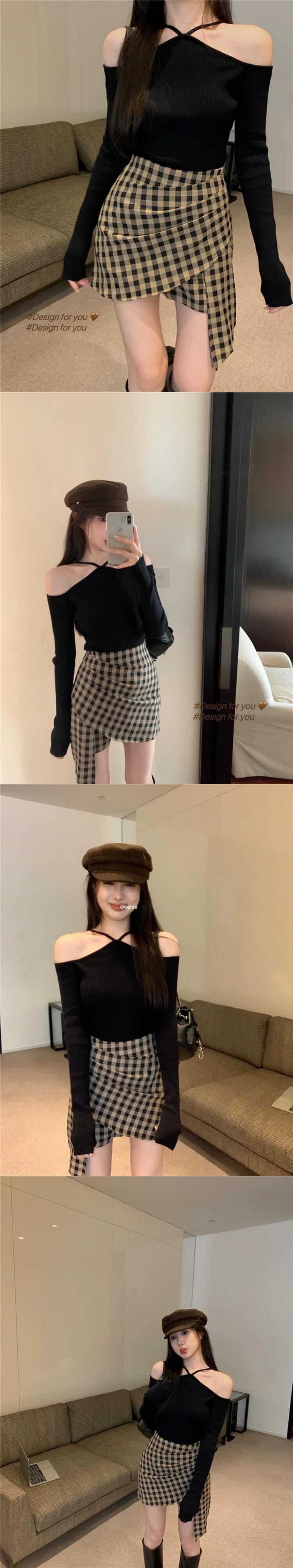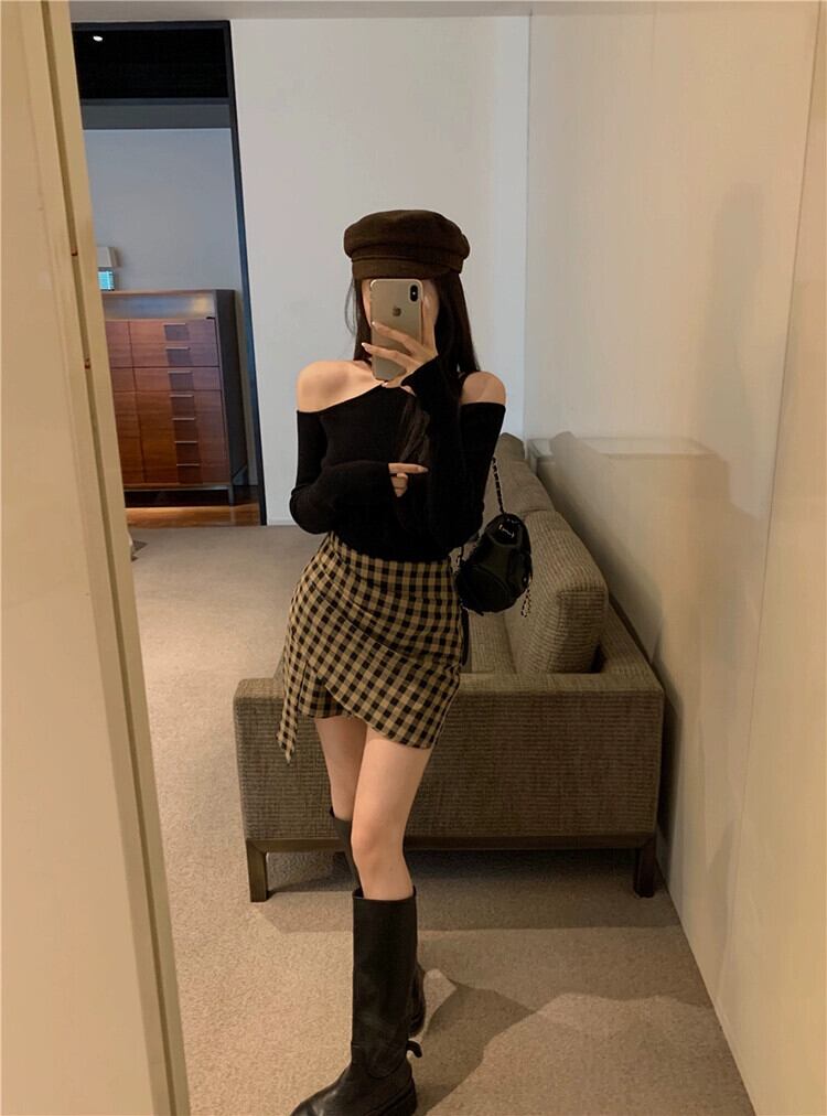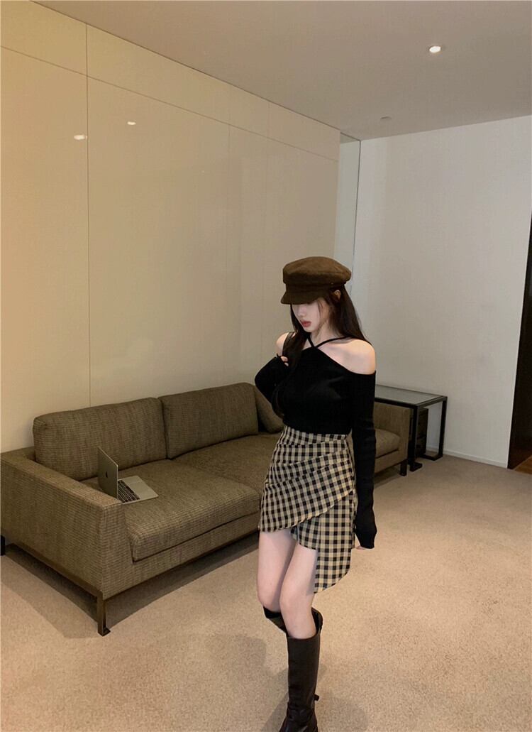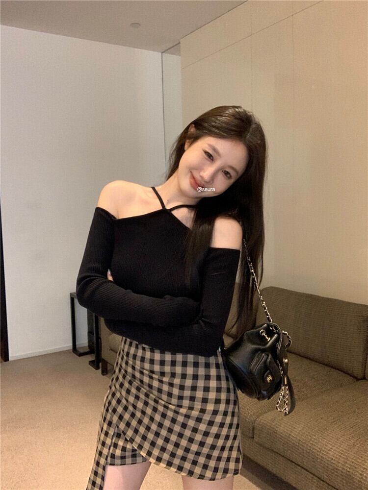 ホットワンショルダー長袖 Tシャツ女性秋 2023 新しい香港スタイルのホルターネックデザインスリムスリムトップイン ロング オータム 秋物 missk20189826188