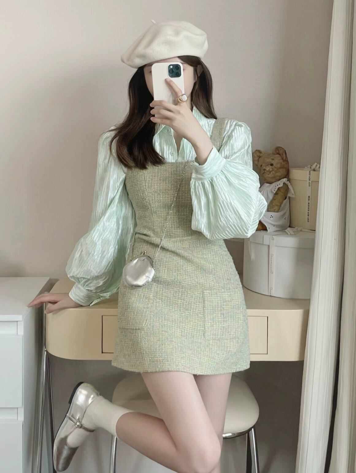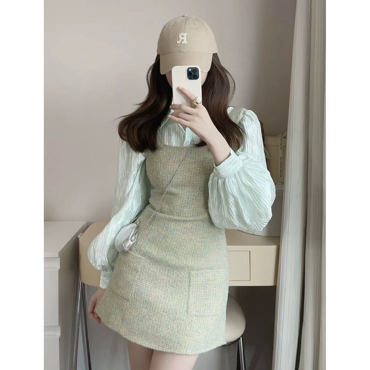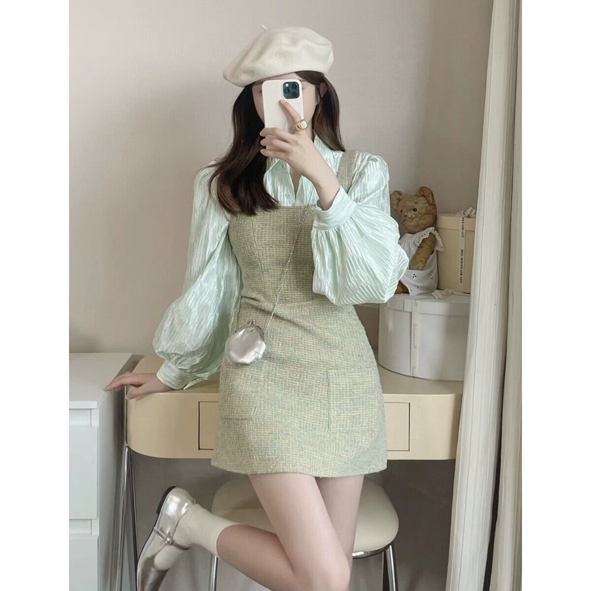 フレンチニッチスリムスリムベストドレスパフスリーブシャツ女性2023秋の新ファッションツーピースセット オータム 秋物 missk27905166458