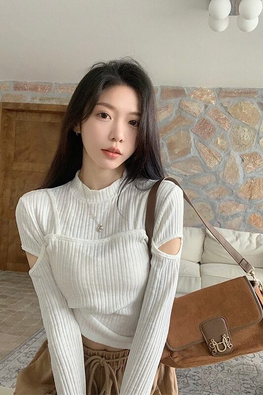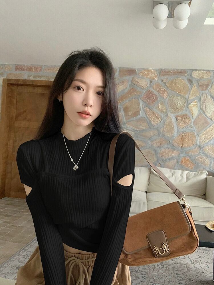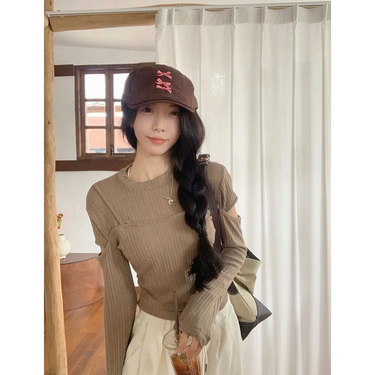 ホット中空長袖セーター女性の秋バージョン 2023 新デザインステッチスリム痩身ボトリングシャツ ロング オータム 秋物 missk11552023787