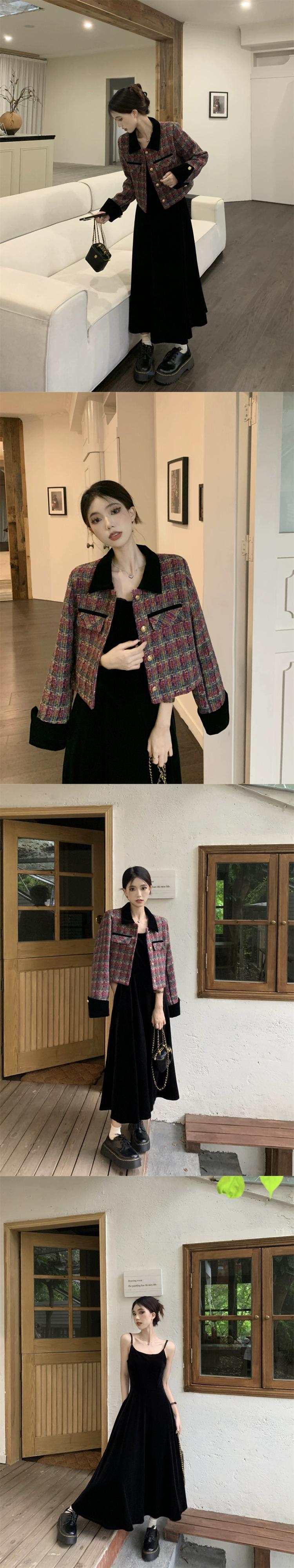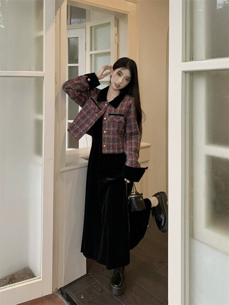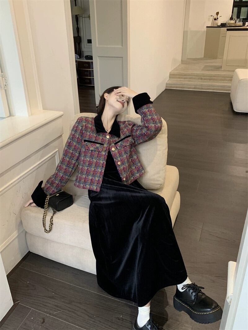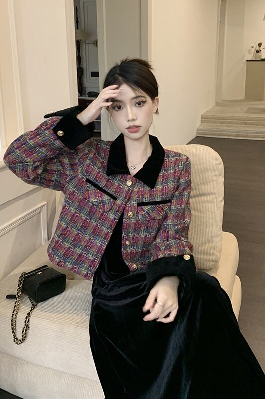 Xiaoxiangfeng ジャケット女性の 2023 秋の新デザインコントラストラペルチェック柄 eign スタイルショート長袖トップ ロング オータム 秋物 missk65111748129