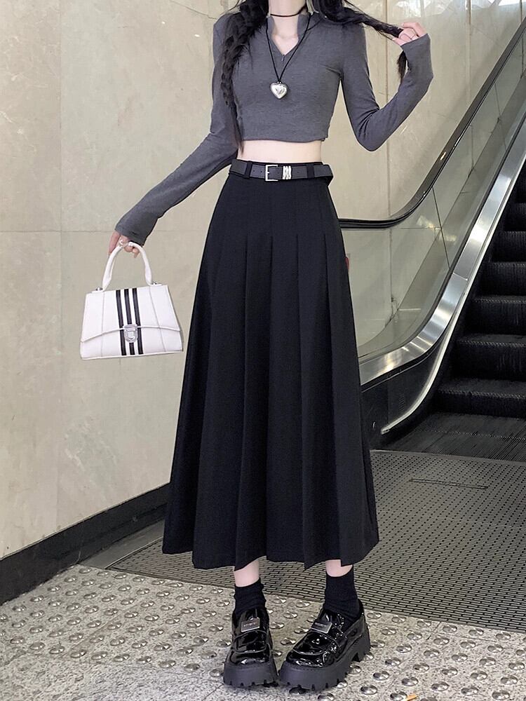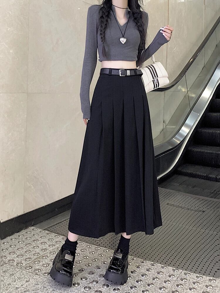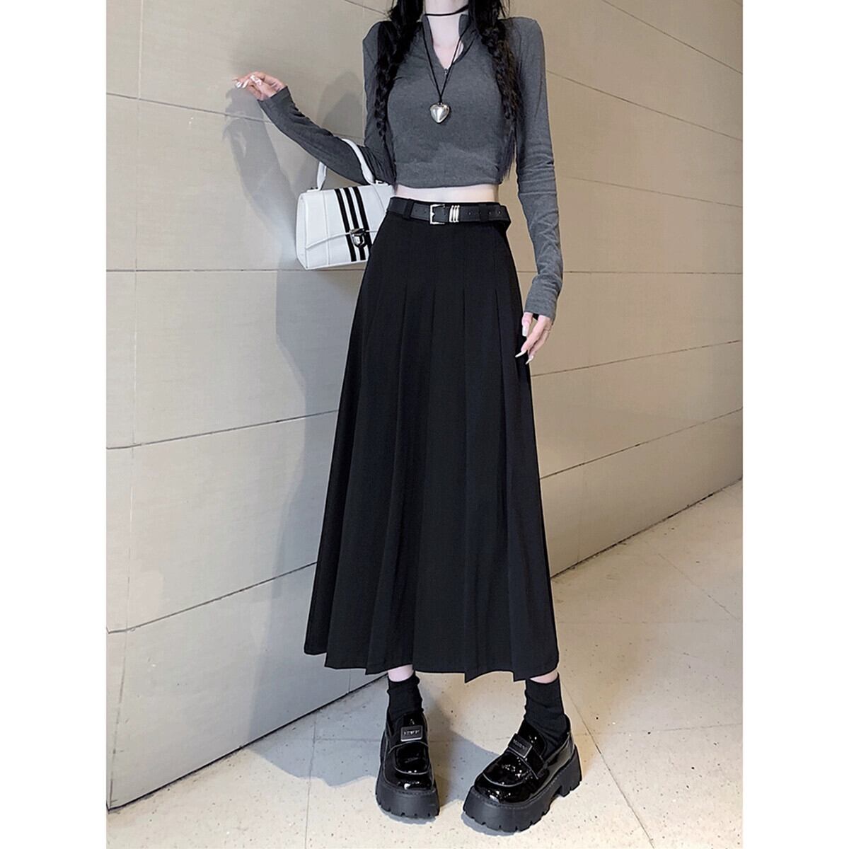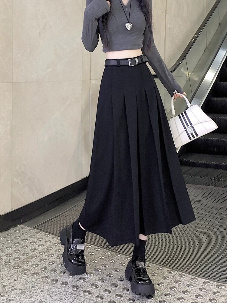 グレープリーツスカート女性秋バージョン 2023 新しいミッドレングスハイウエストスリムスカート A ラインスカート オータム 秋物 Aライン missk18233279919