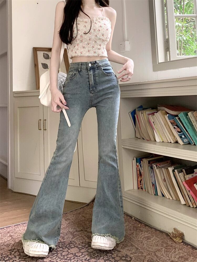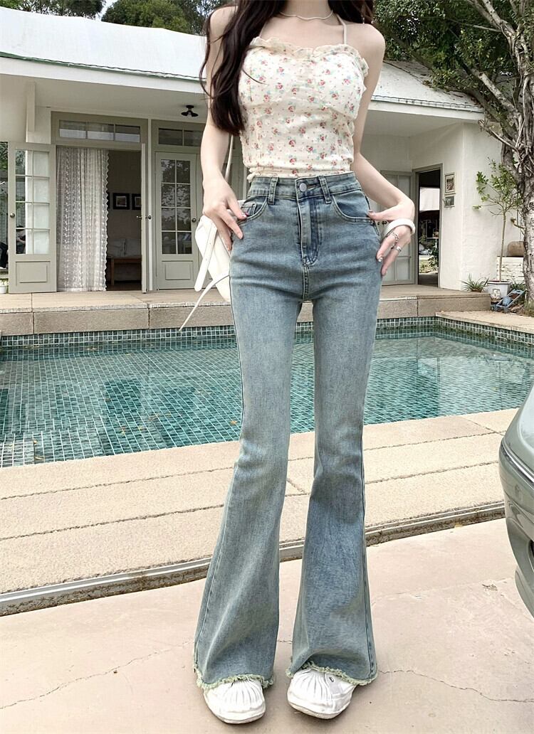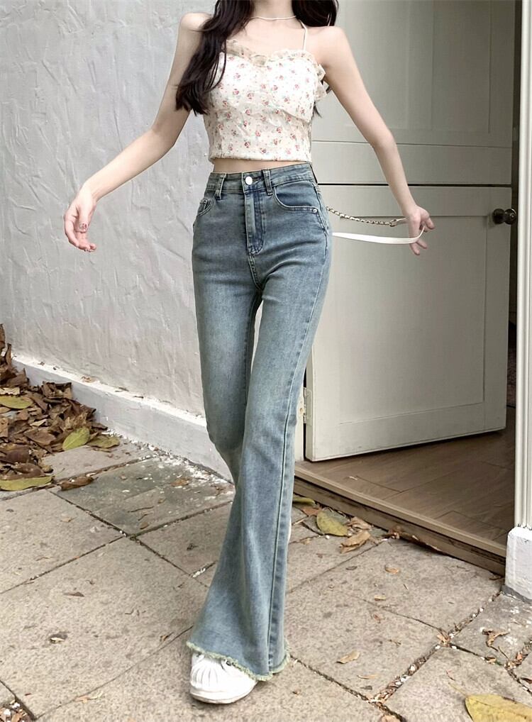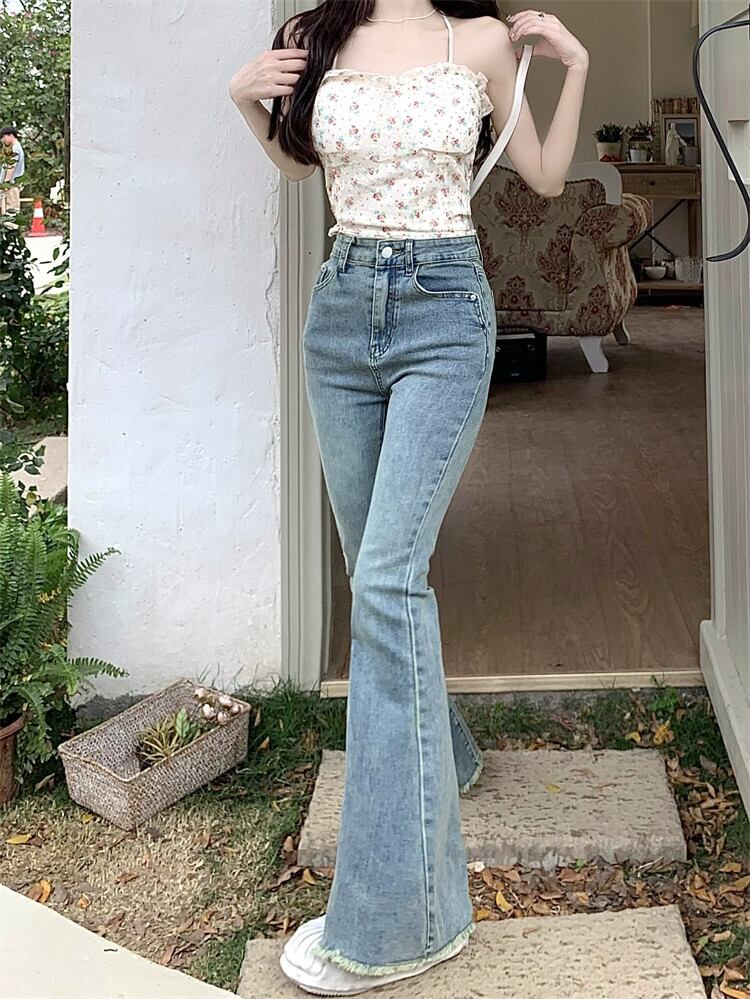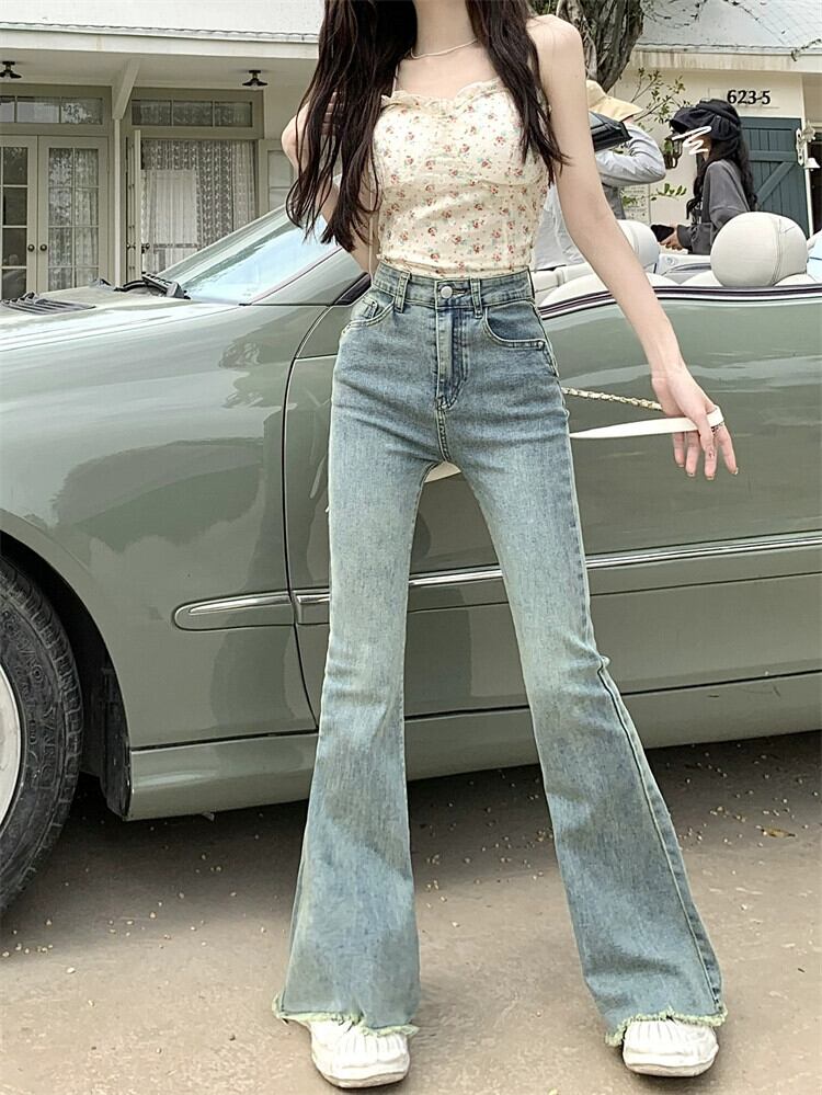 ホットガール重工業ローエッジジーンズ秋 2023 女性のウエストスリムスリムマイクロフレアパンツトレンディ レッド オータム 秋物 missk43325387963