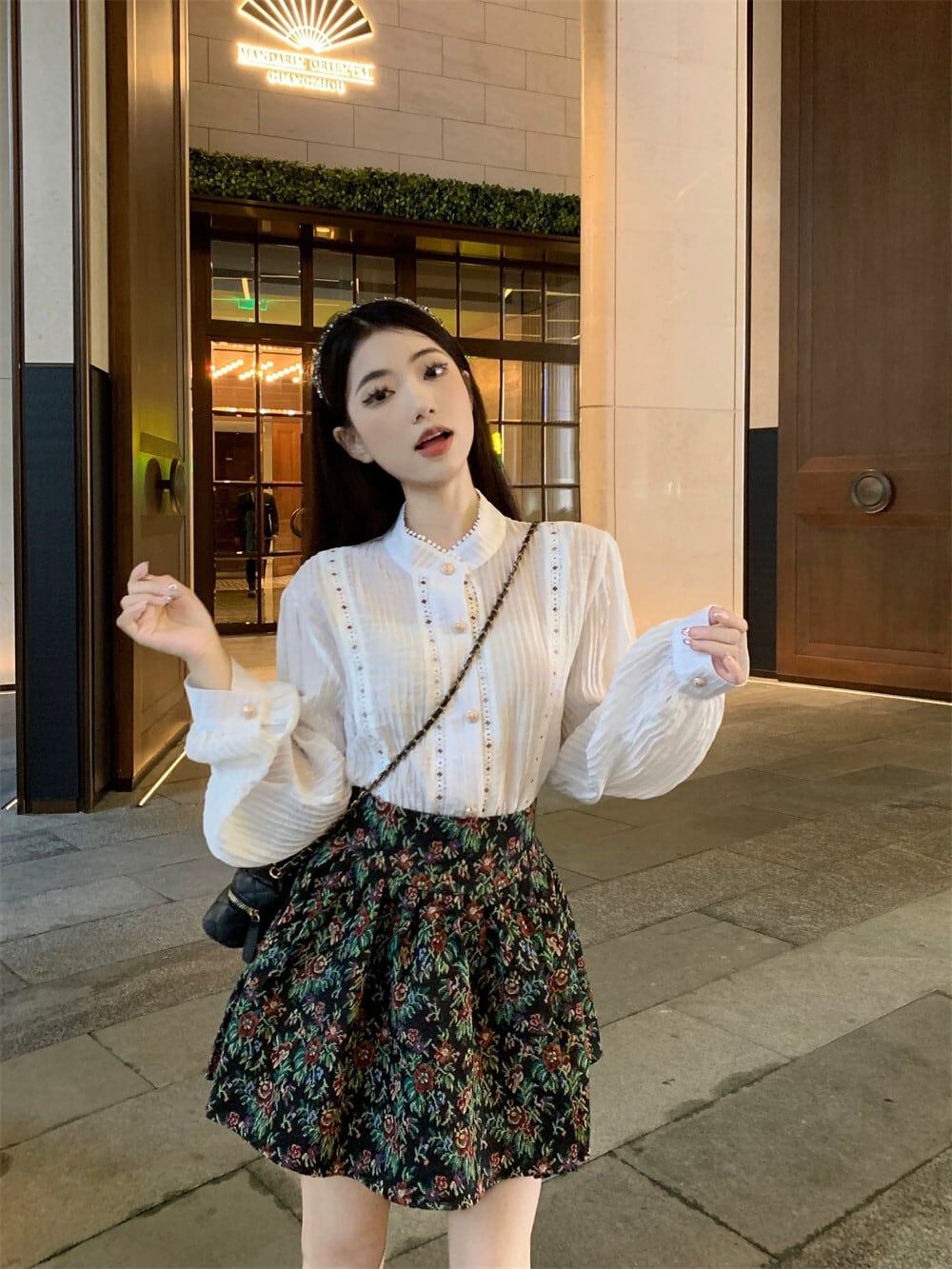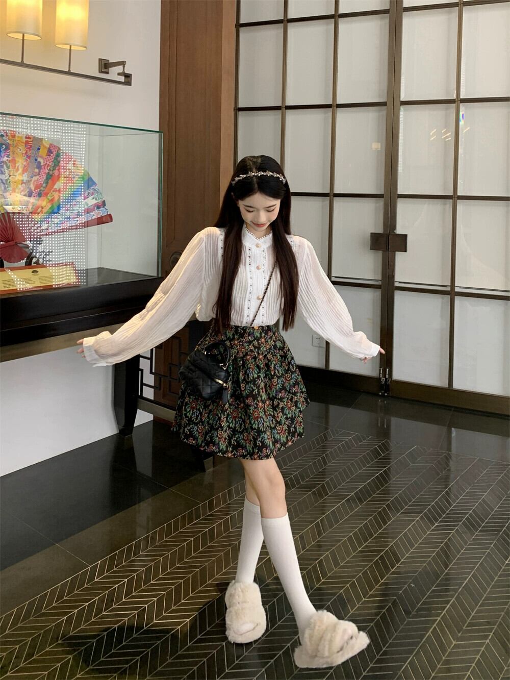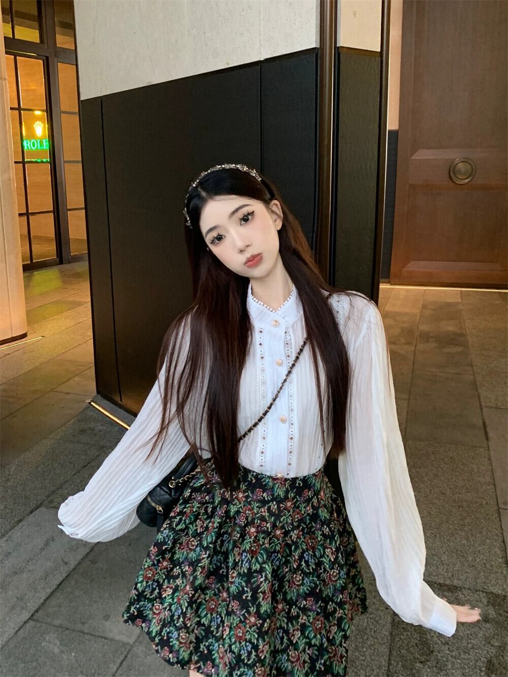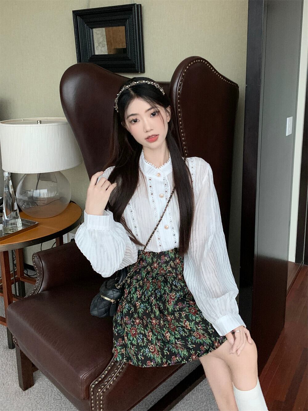 フランス宮殿スタイル中空重工業長袖シャツハイウエスト花柄スカート女性の 2023 秋の新作 2 点セット ロング レース オータム 秋物 missk43757933608