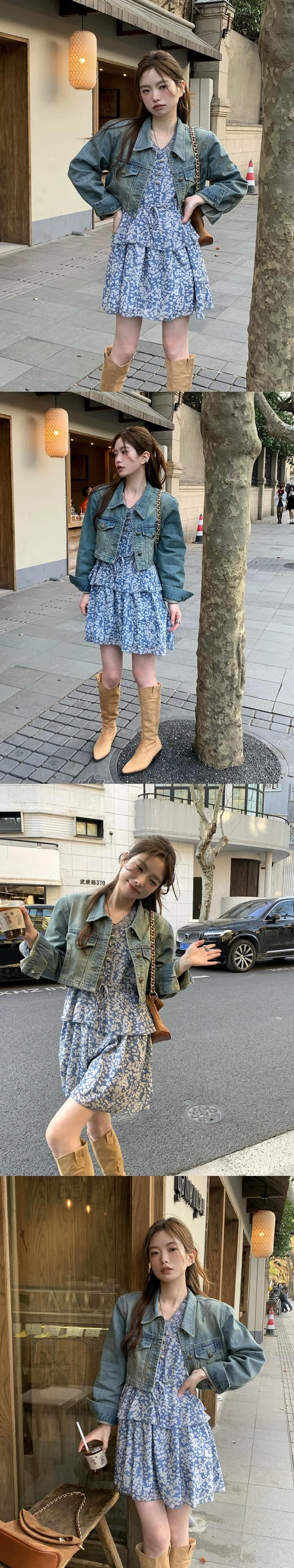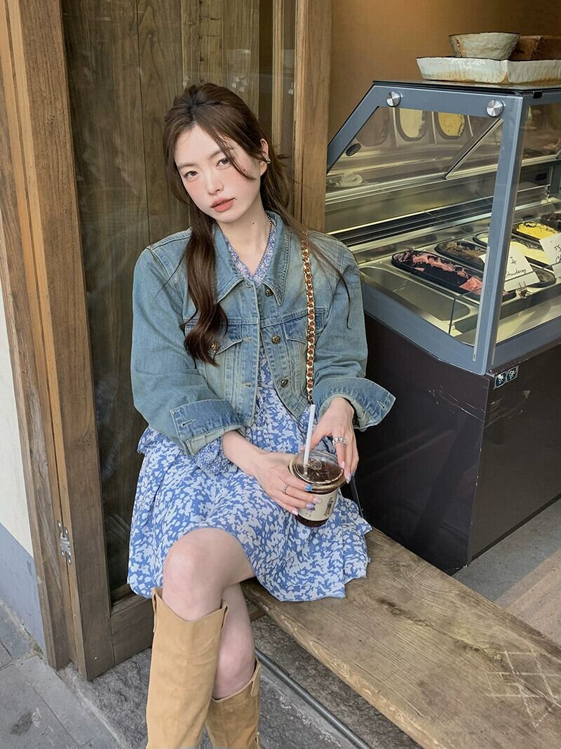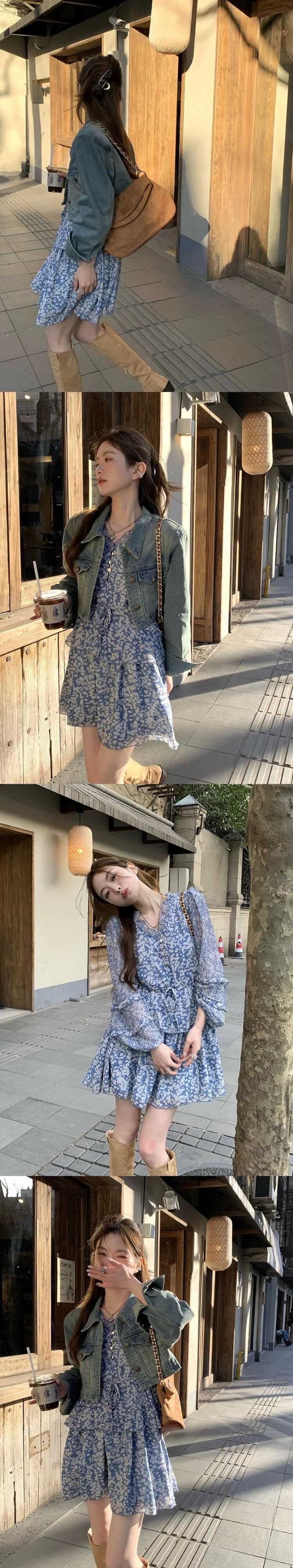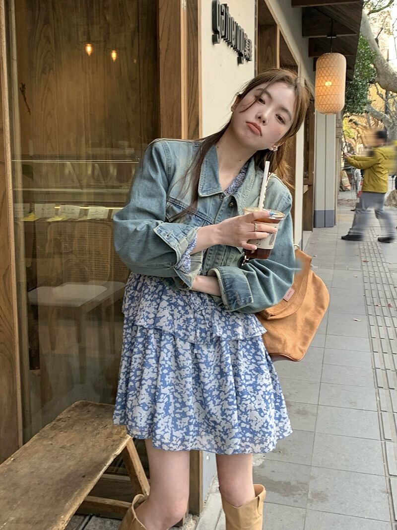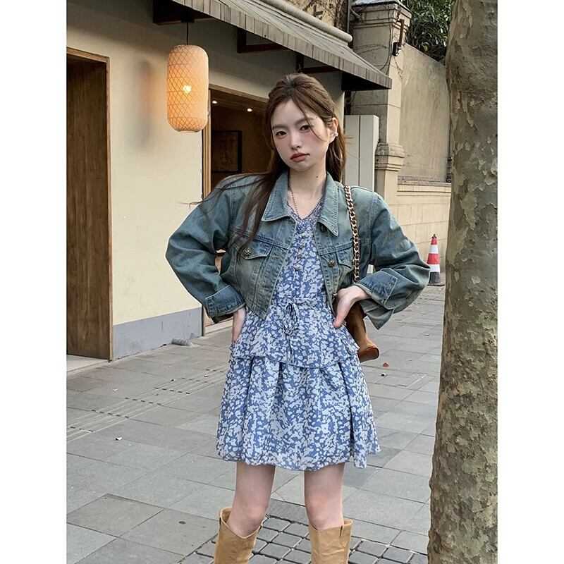 レトロラペルショート長袖デニムジャケット花柄レースドレス女性の秋 2023 スーツ ロング オータム 秋物 missk98402358651
