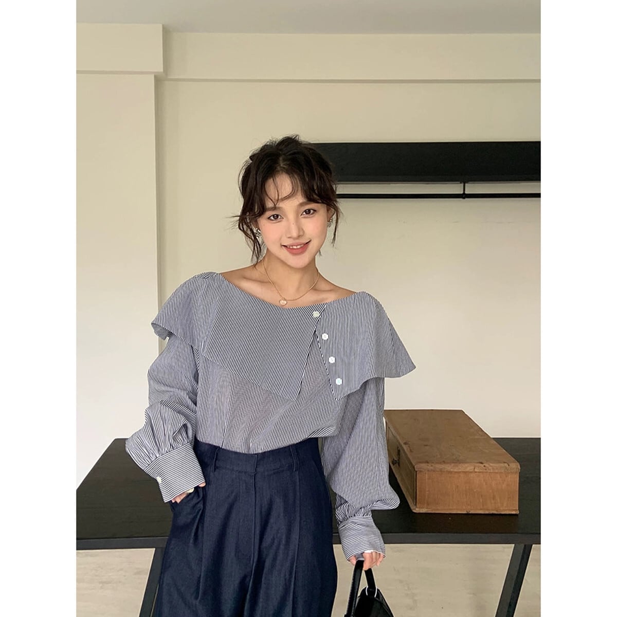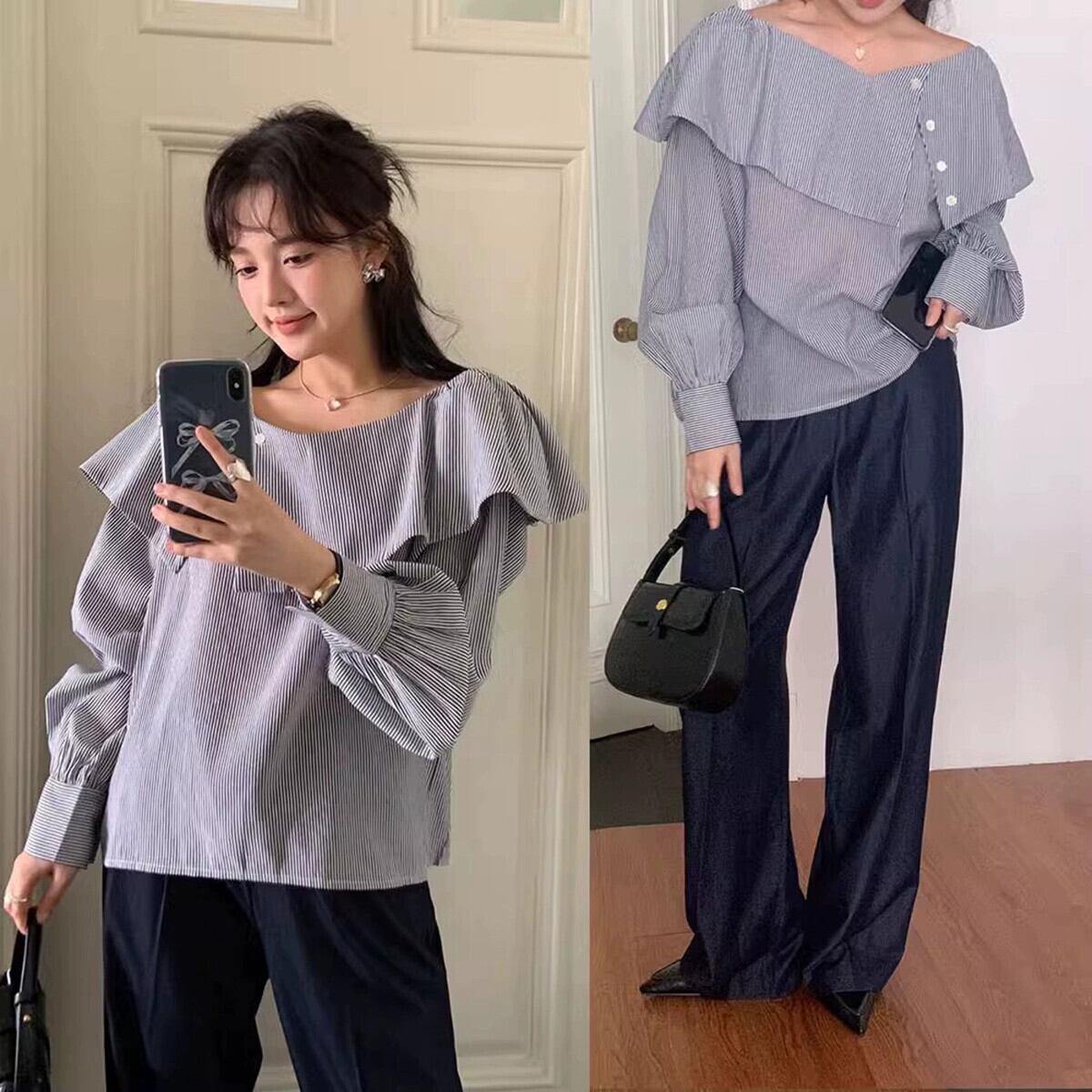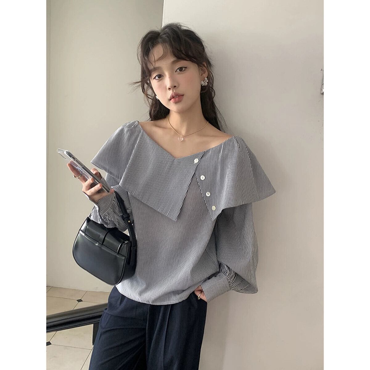 V ネックオフショルダー長袖シャツレディース 2023 秋の新しいスタイル不規則なデザインの eign スタイルのアウターウェアシックなトップ ロング オータム 秋物 Vネック missk10520544021